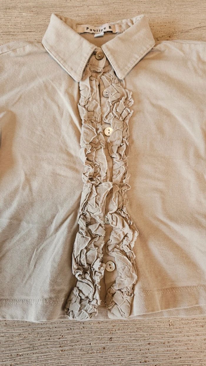 Chemise beige foncé à manches longues, avec froufrous, Pauline B. 8 ans, neuf - photo numéro 3