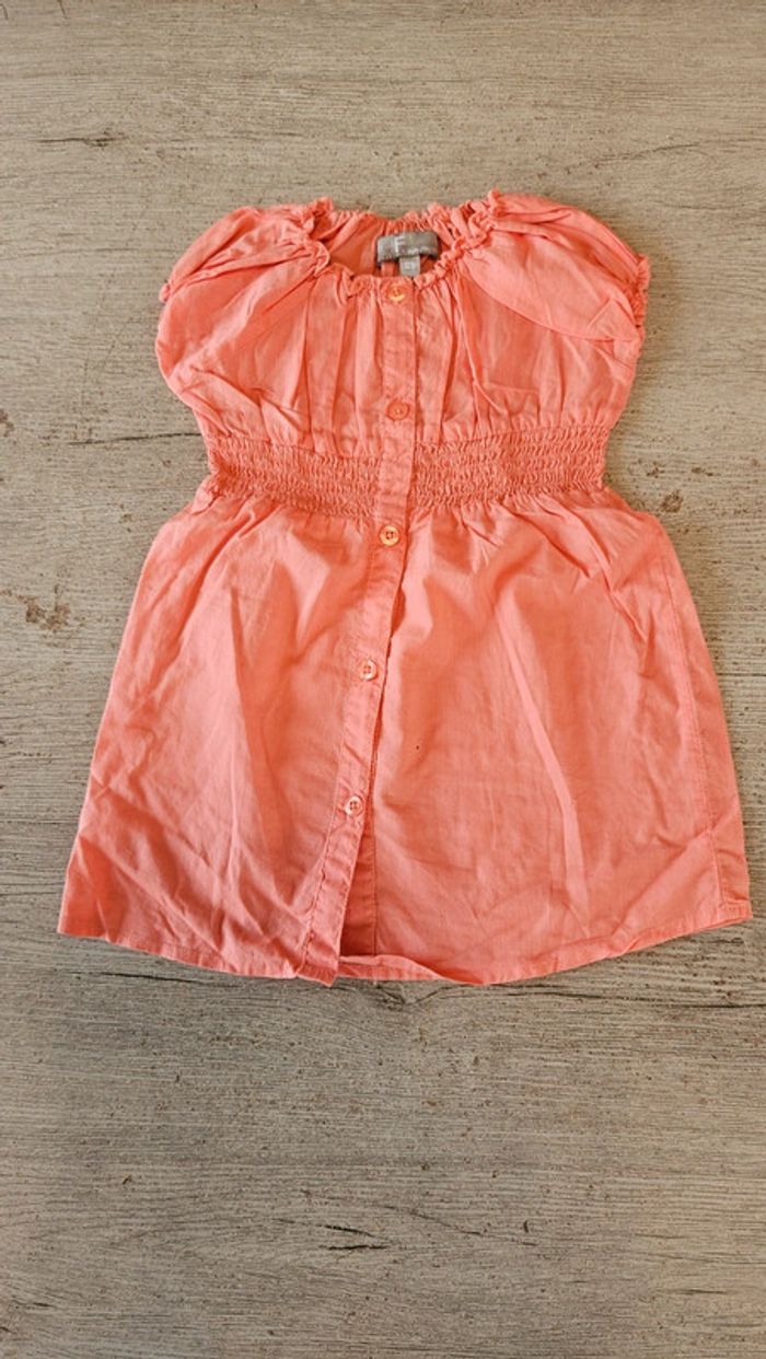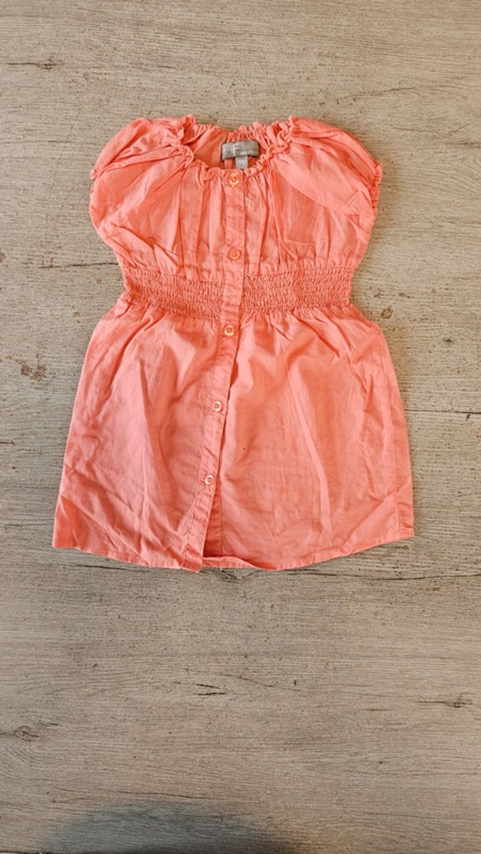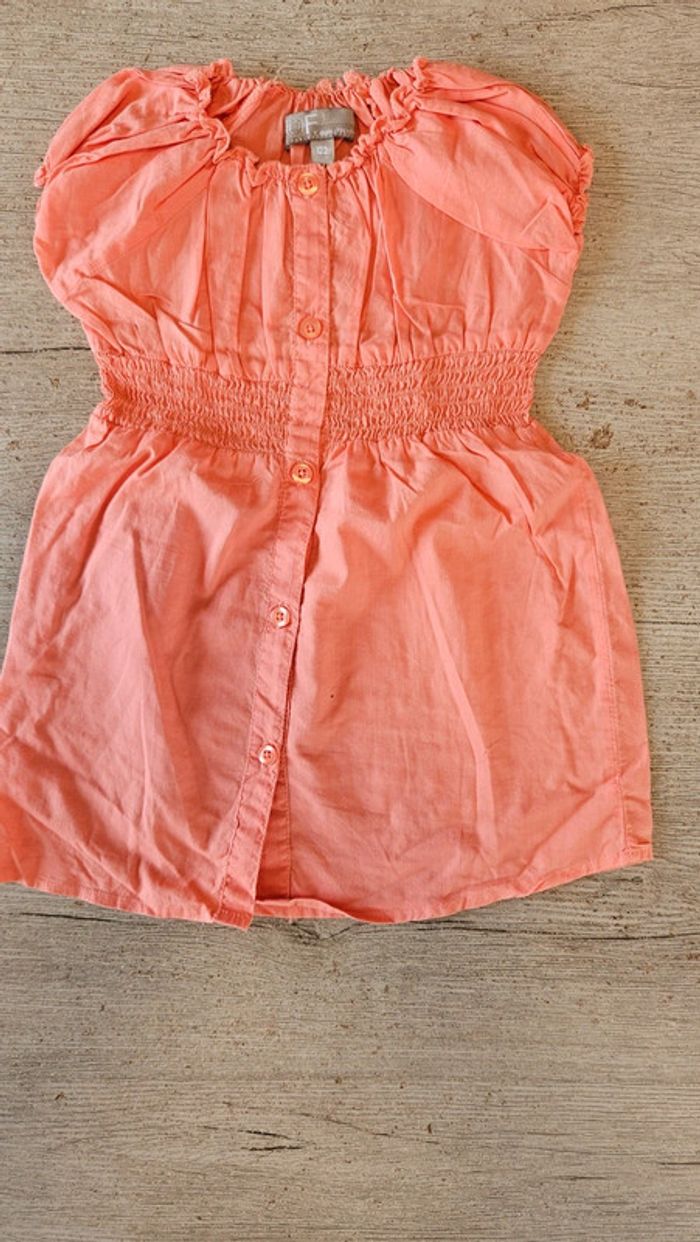 Jolie blouse d été de couleur orange clair. Ceintrée avec 1 élastique. Se ferme par des boutons. Jamais mise. Convient pour du 6 à 7 ans #deborahtock_7ans