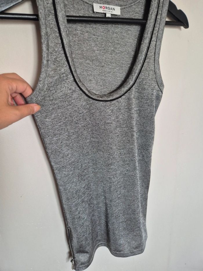 📌 Lot 20% de remise pour l'achat de 5 articles, suite ... Débardeur gris, large bretelle, fermeture éclair sur les cotés, ➡️Largeur à plat sous les bras  41 cm ➡️Longueur 63 cm ➡️ 96 % polyester 4 % élasthanne ⭐ Excellent état ✈Envoi rapide des colis 💗 Abonnez vous à mon profil, nombreux articles ajoutés régulièrement ! 🌸 Tapez Laetitresors pour voir mes annonces #laetitresors_debardeur34 #debardeur #gris #fermeture #éclair #zip #morgan #laetitresors
