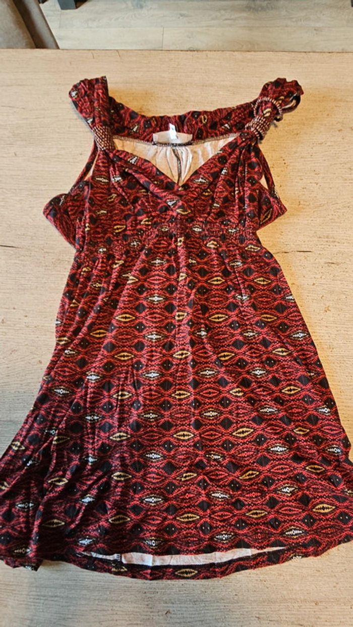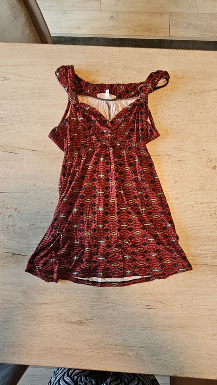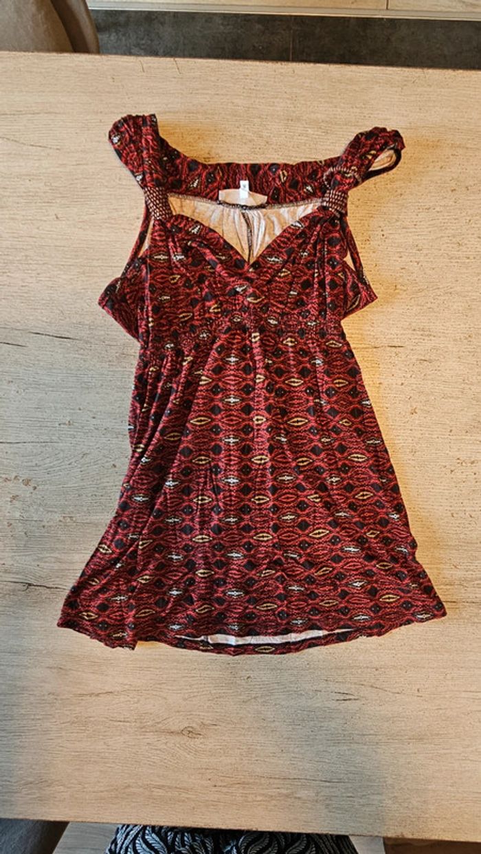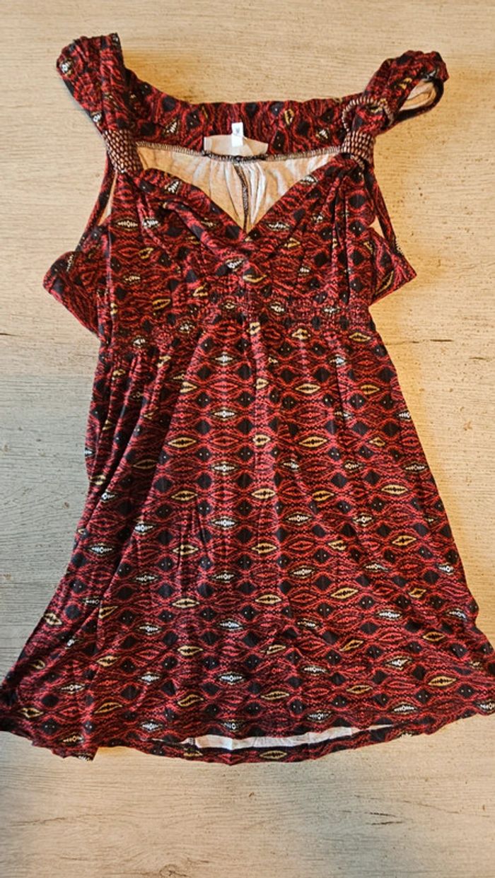 Tunique longue, sans manche rouge et noire, ceintrée, K Woman, M, nickel - photo numéro 1