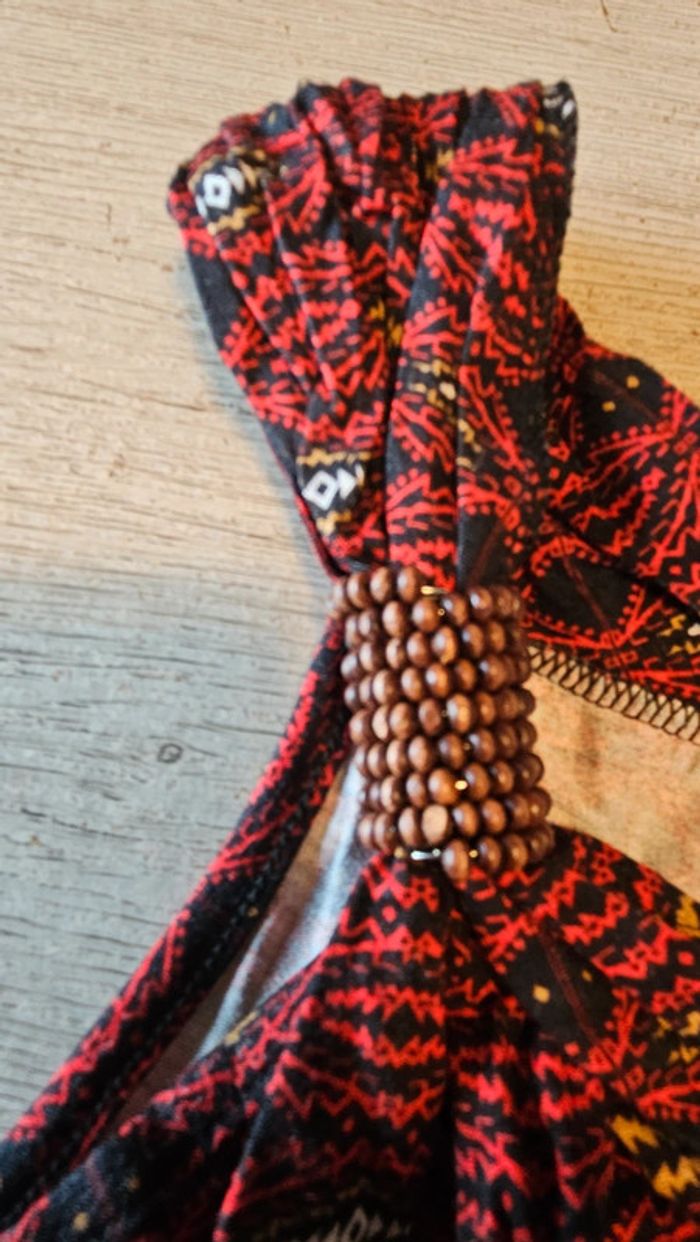 Tunique longue, sans manche rouge et noire, ceintrée, K Woman, M, nickel - photo numéro 2