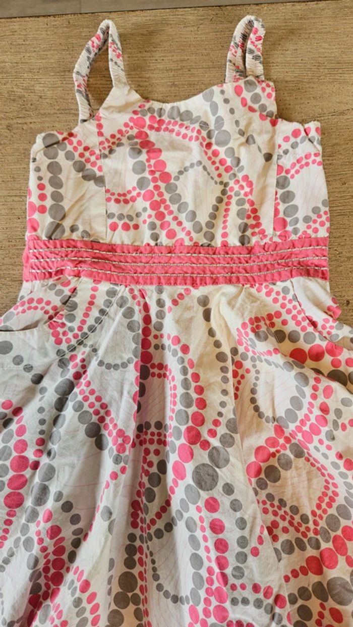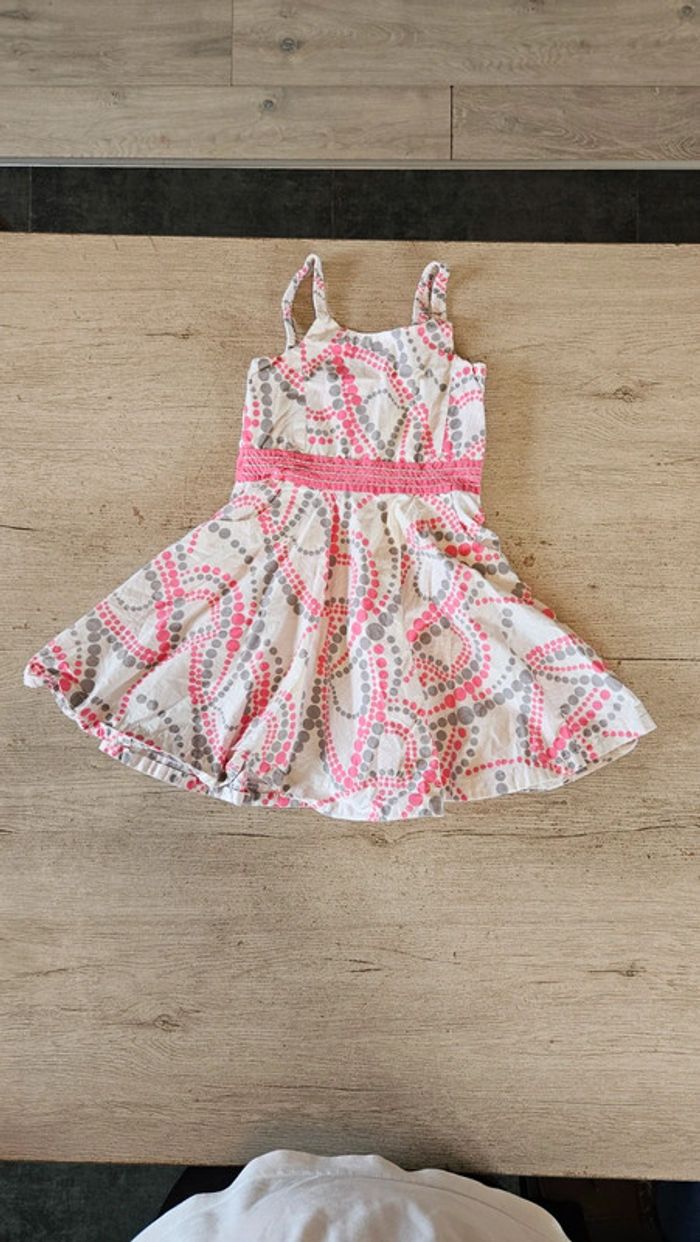 Jolie robe d été courte et évasée. Elle n a jamais été mise mais sans étiquette car lavée. Se ferme par 1 tirette sur le côté. Les bretelles sont elastiques. Petite poche de chaque côté. Ideal pour la rentree des classes. Convient pour du 5 à 6 ans #deborahtock_5ans