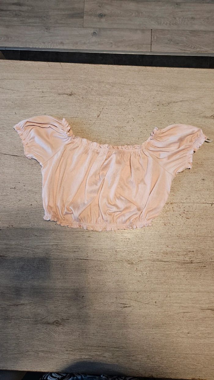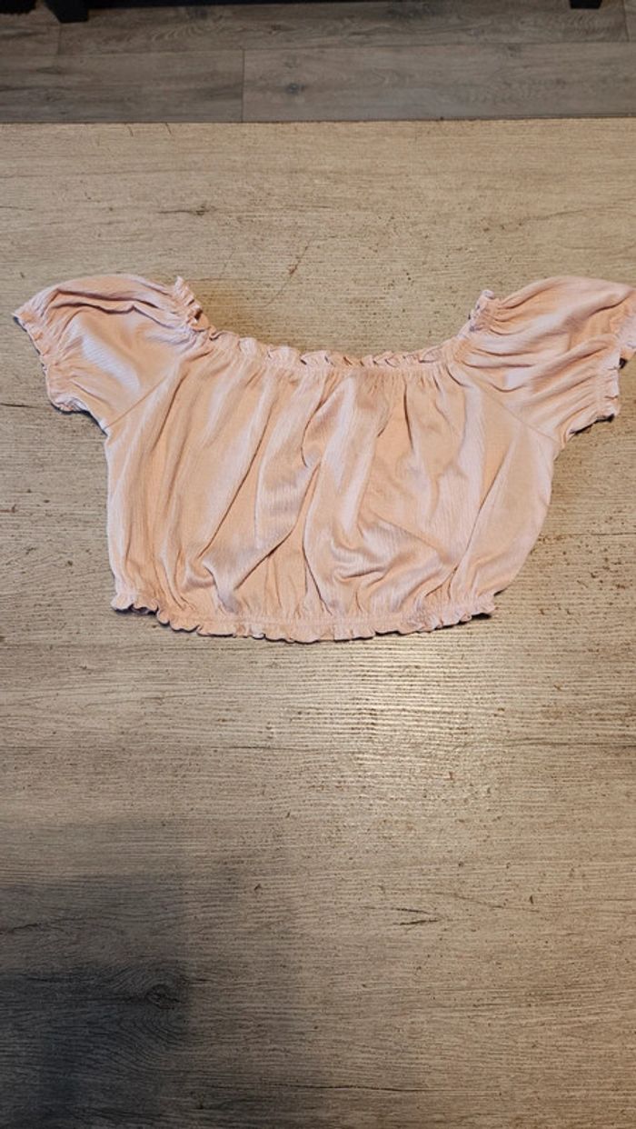 Joli cro top d été finement cotellé. Elastiqué au col, aux manches, en bas. Neuf mais sans etiquette car lavé. Convient pour du S ou du M #deborahtock_femmeM