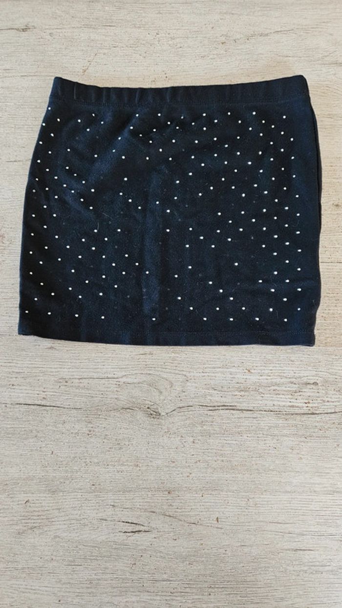 Jupe courte très elastique. Elle est noire avec des sequins devant. En très bon état mais il manque des sequins, ce qui ne se voit pas quand elle est mise Convient pour du S à M #deborahtock_femmeM