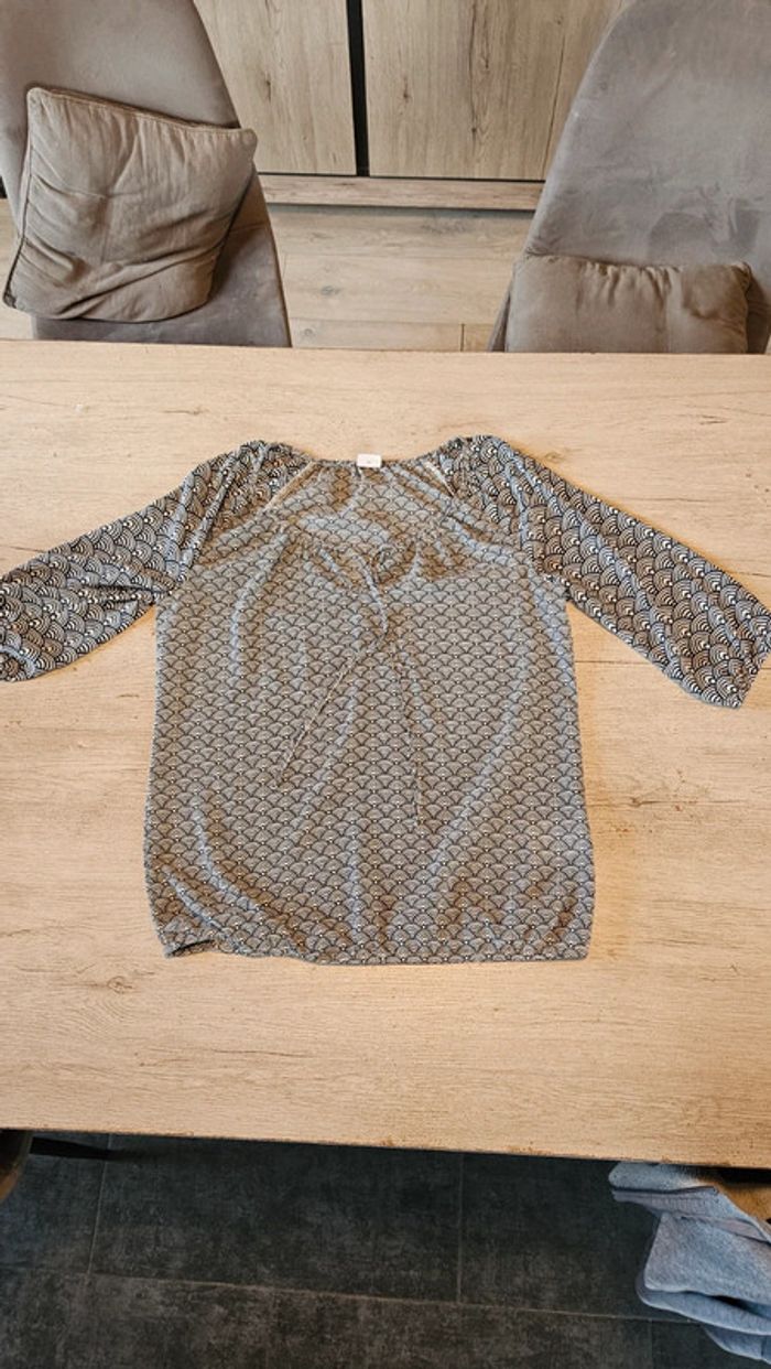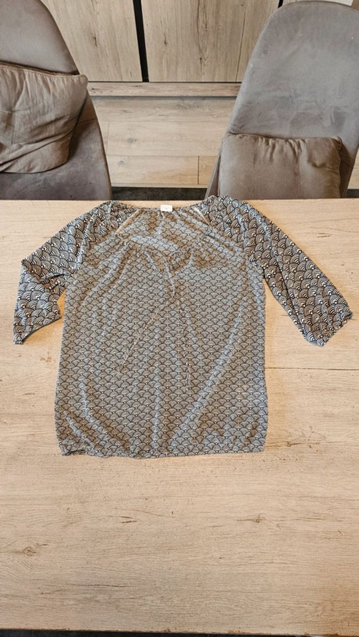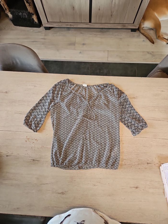Blouse à manches courtes noire et beige, col V,Esprit, 38/40, nickel - photo numéro 2