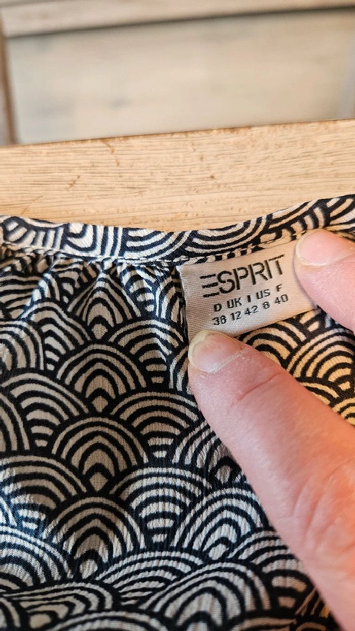 Blouse à manches courtes noire et beige, col V,Esprit, 38/40, nickel - photo numéro 6