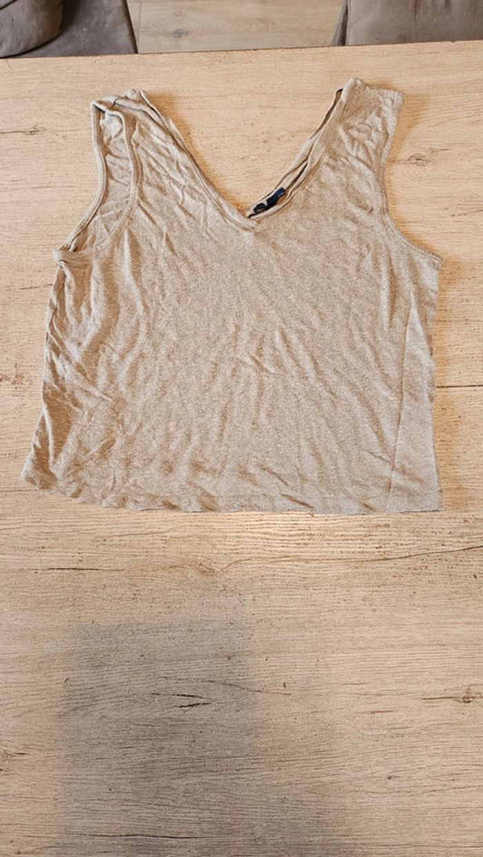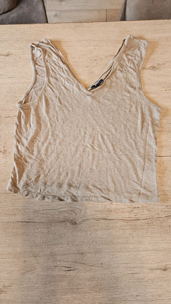 Debardeur femme légèrement brillant. Très fluide. Mis mais encore bien. Convient bien pour du L #deborahtock_femmeL