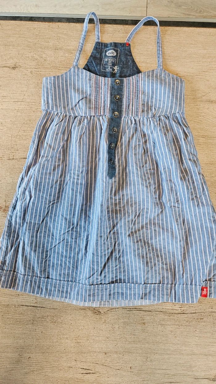 Robe courte à bretelles, bleue lignée, EDC, 8/9 ans, nickel - photo numéro 1