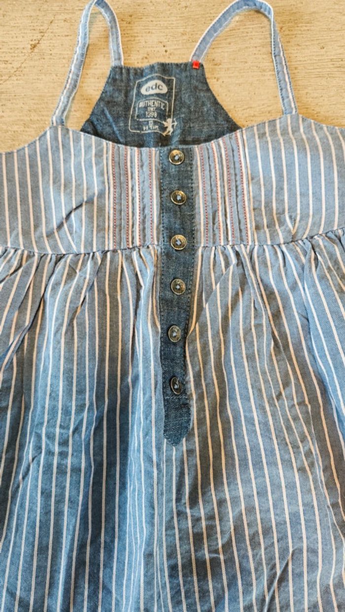 Robe courte à bretelles, bleue lignée, EDC, 8/9 ans, nickel - photo numéro 3