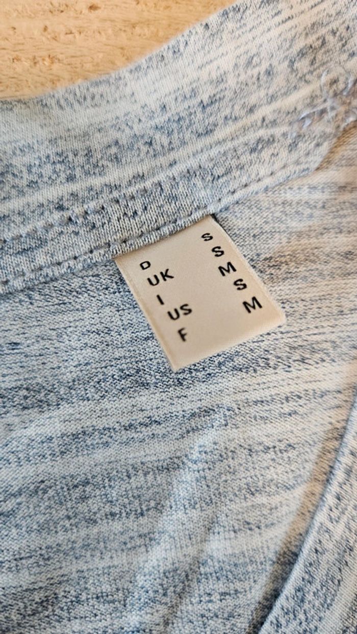 T shirt femme stretch à col en V. Il est neuf mais sans étiquette car lavé. Il est bleu chiné assez clair. Convient pour du M #deborahtock_femmeM