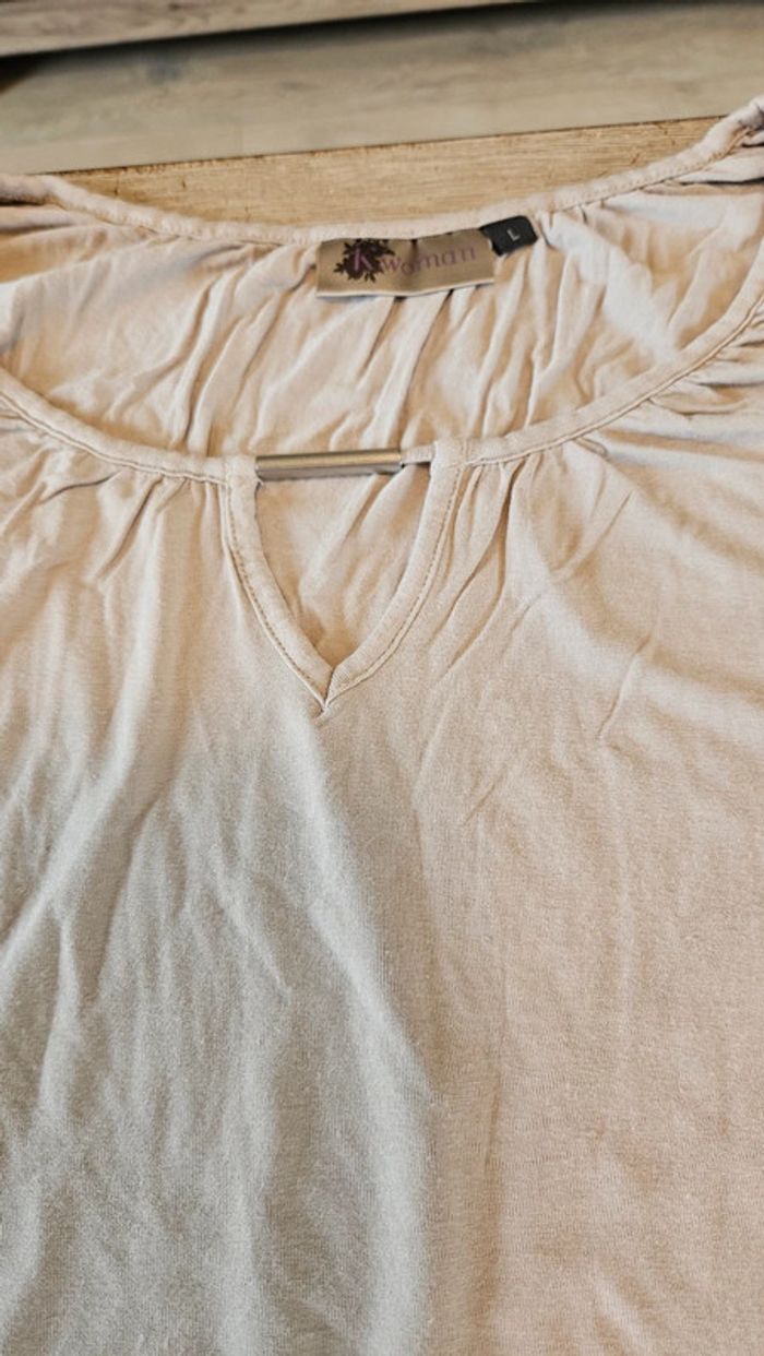 Blouse beige avec bout des manches élastiqué. Col rond avec une petite pièce en métal. Très peu mise donc nickel. Convient bien pour du L #deborahtock_femmeL