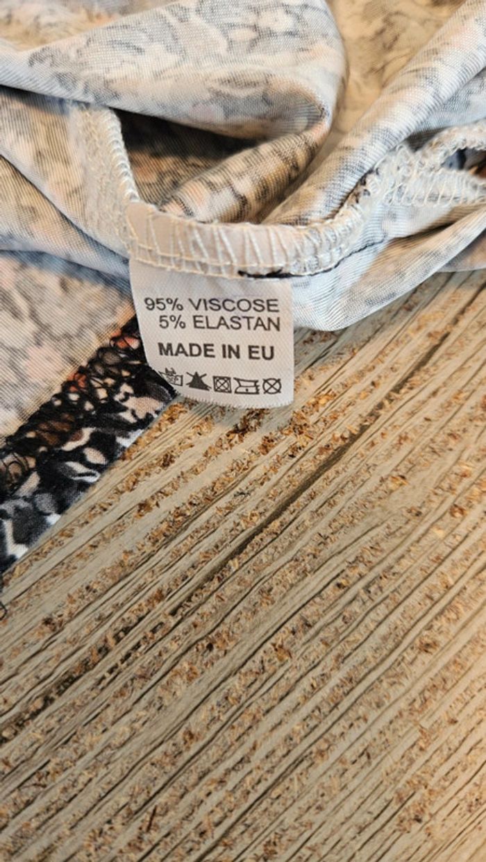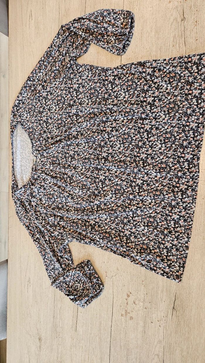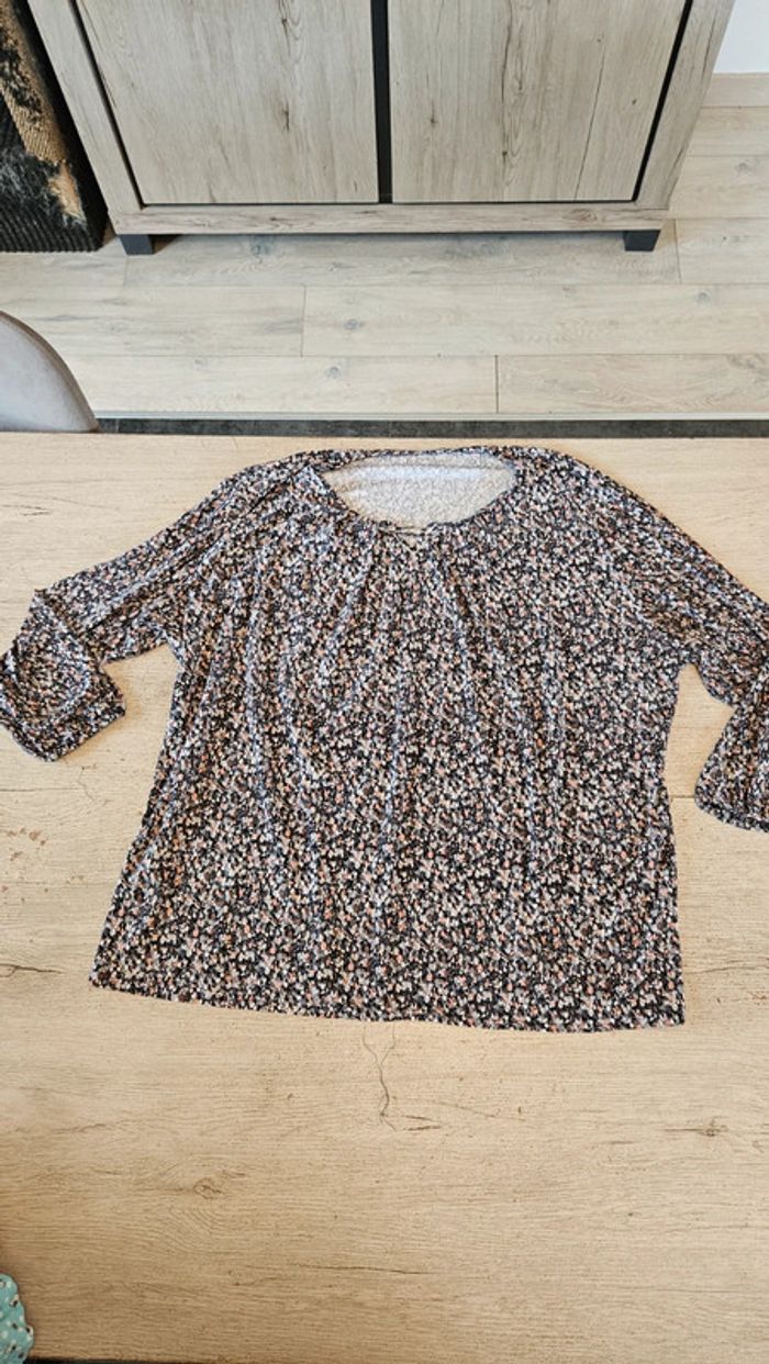 Blouse à manches 3/4 agréable à porter. Petite perle au col. Mise mais encore très bien. Elle est élastique et élastiquée aux manches. Je ne sais plus la marque, j ai enlevé les étiquettes. Convient bien pour du L voire un petit XL #deborahtock_femmeL