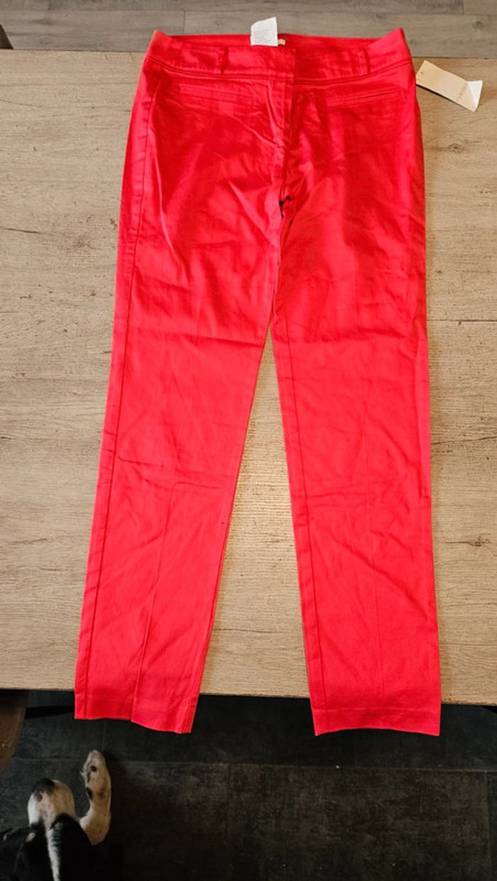 Pantalon léger, rouge clair, coupe droite, stretch, Camaîeu, 40, neuf - photo numéro 1
