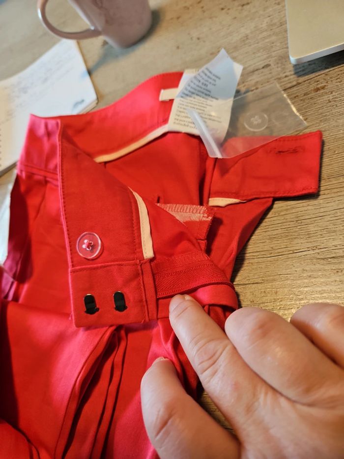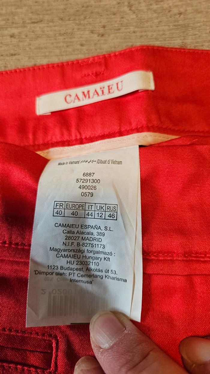 Pantalon léger, rouge clair, coupe droite, stretch, Camaîeu, 40, neuf - photo numéro 9