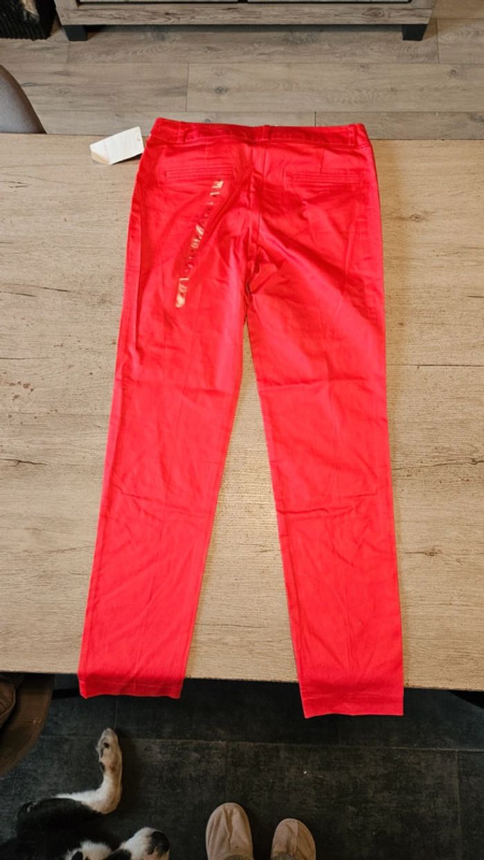 Pantalon léger, rouge clair, coupe droite, stretch, Camaîeu, 40, neuf - photo numéro 3