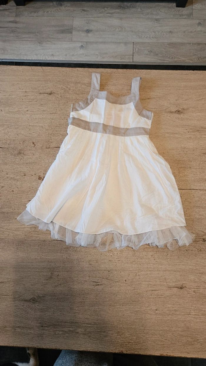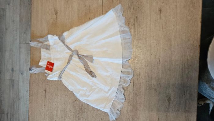 Robe courte classique blanche à bretelles grises, Tissaia, 6 ans, neuve - photo numéro 1