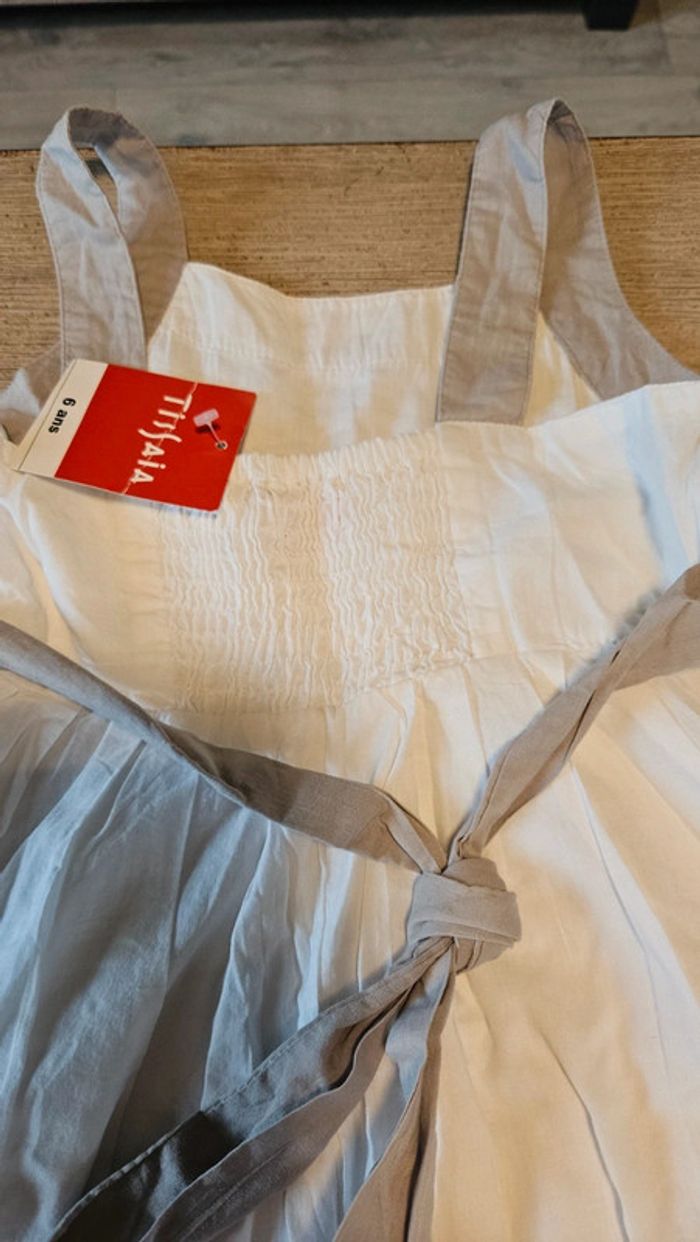 Robe courte classique blanche à bretelles grises, Tissaia, 6 ans, neuve - photo numéro 3