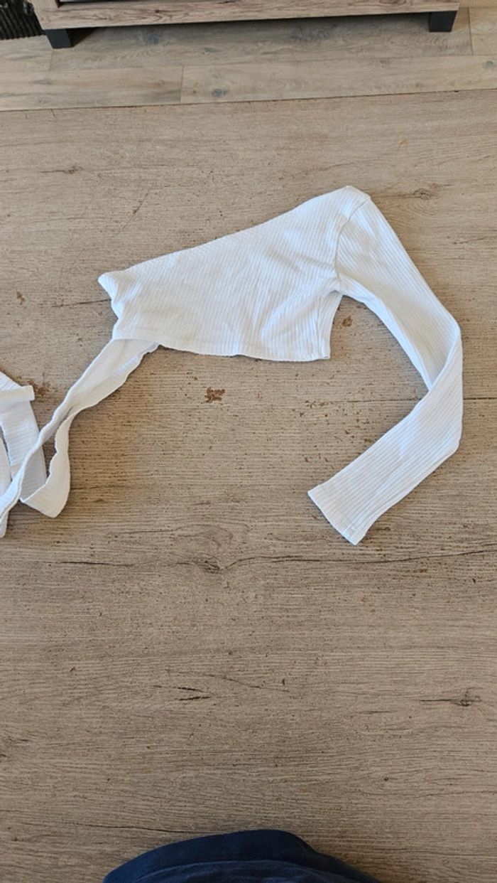 Joli top blanc cotellé et très élastique. Il est nickel car a été mis 1 fois pour une soirée. Convient bien pour du XS ou S #deborahtock_femmeS