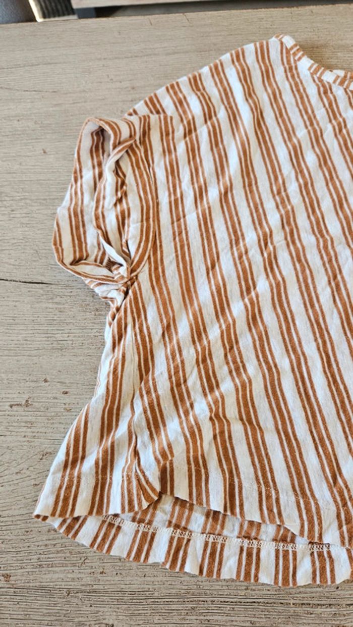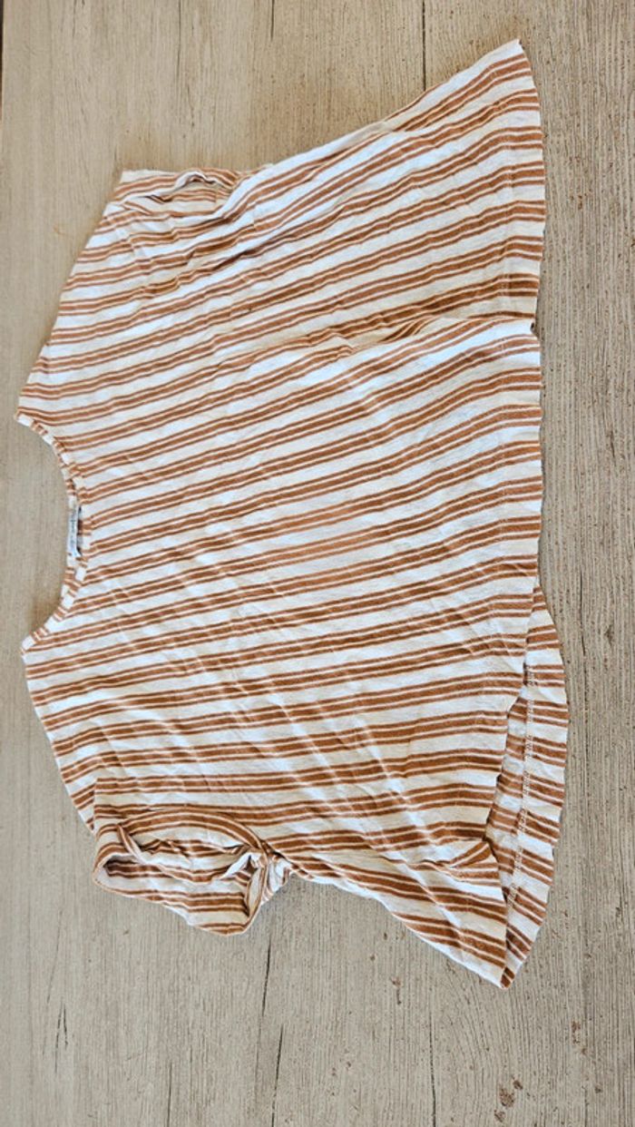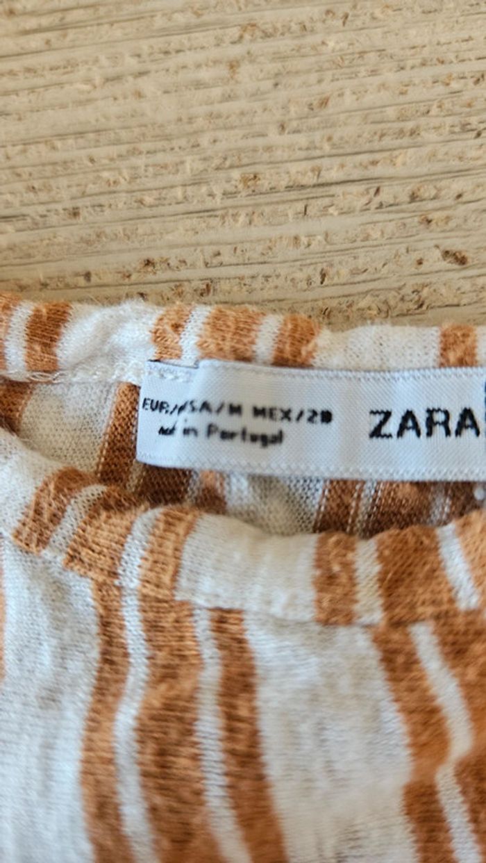 Blouse courte et large beige ligné orange foncé, Zara, M - photo numéro 2