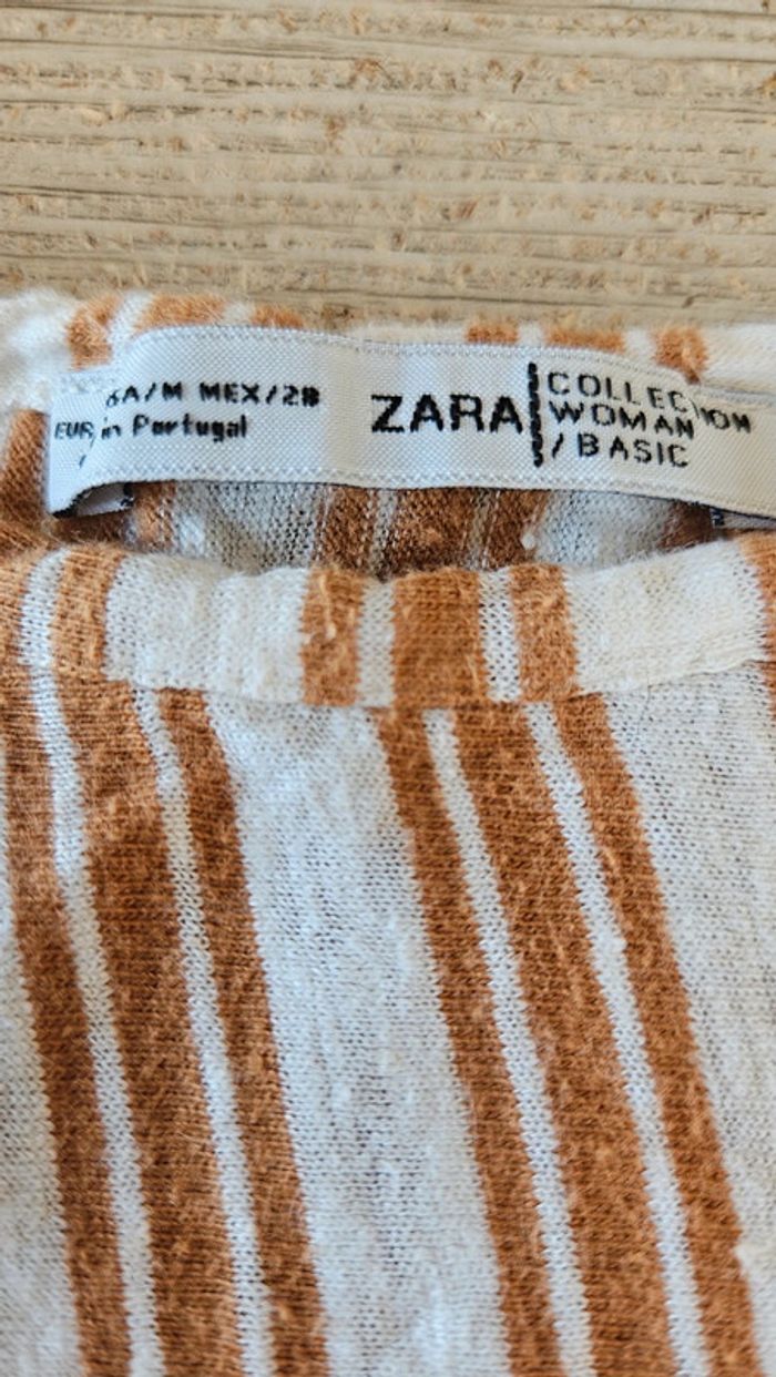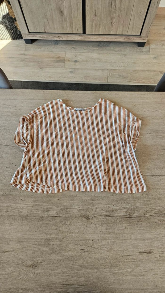Blouse courte et large beige ligné orange foncé, Zara, M - photo numéro 1