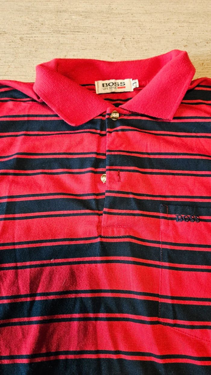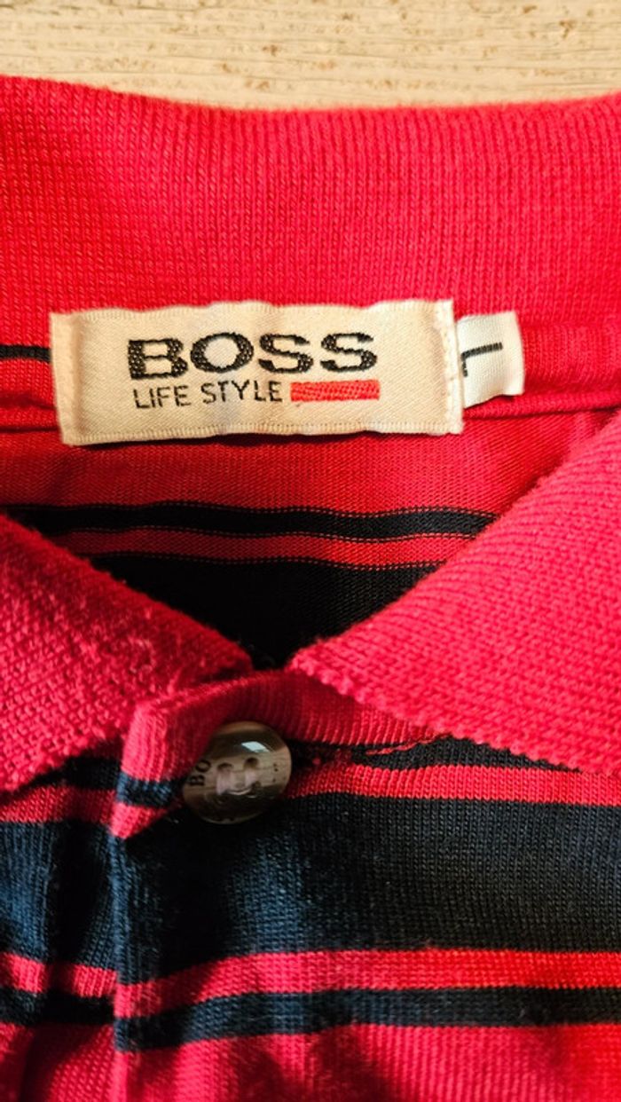 Polo à manches courtes bleu foncé et rouge, Boss Life Style, L, peu mis - photo numéro 5