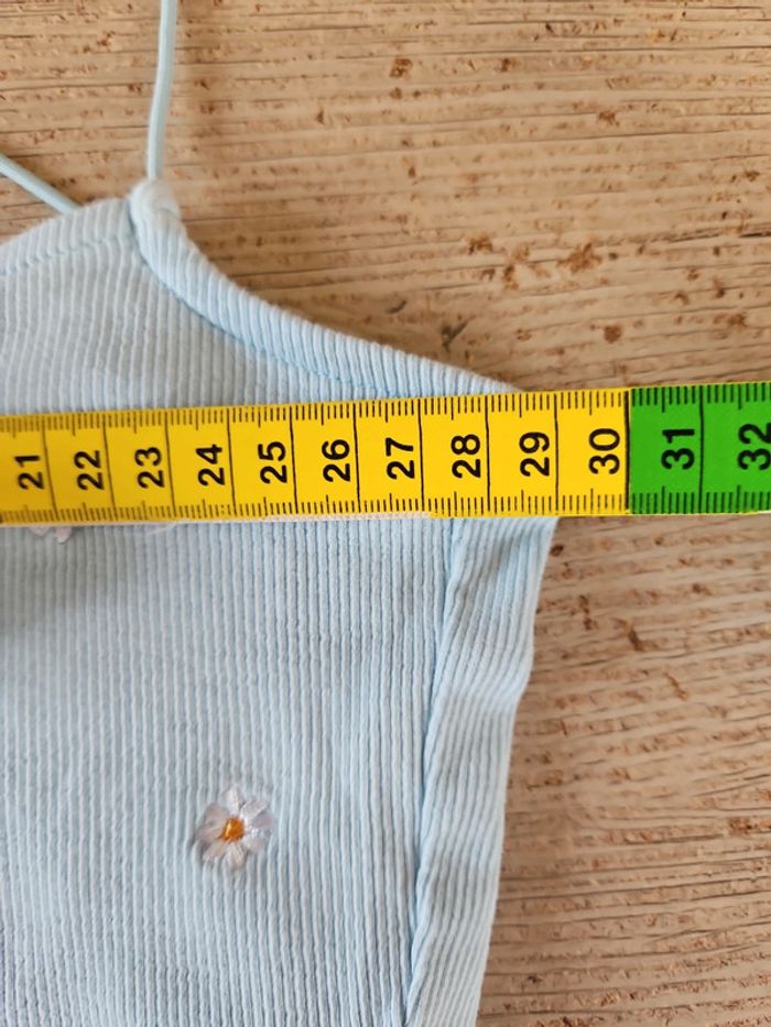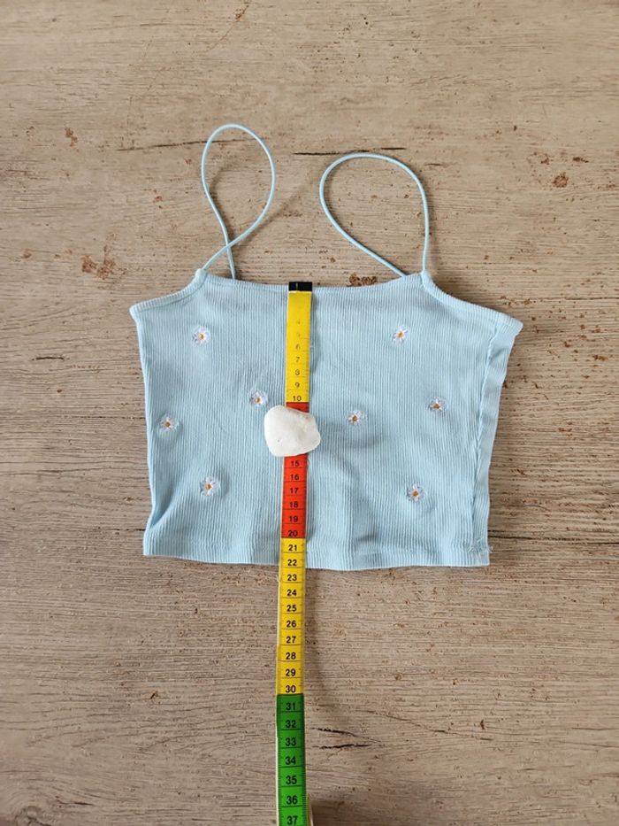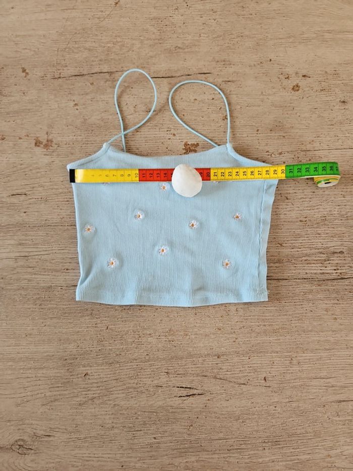 Débardeur court, bleu clair finement cotellé, avec fleurs brodées, Primark, taille XS - photo numéro 11
