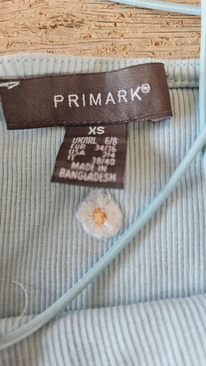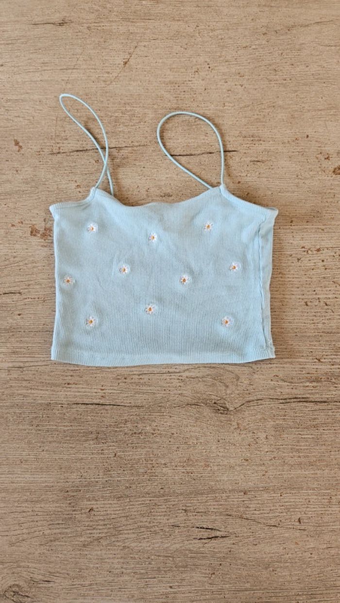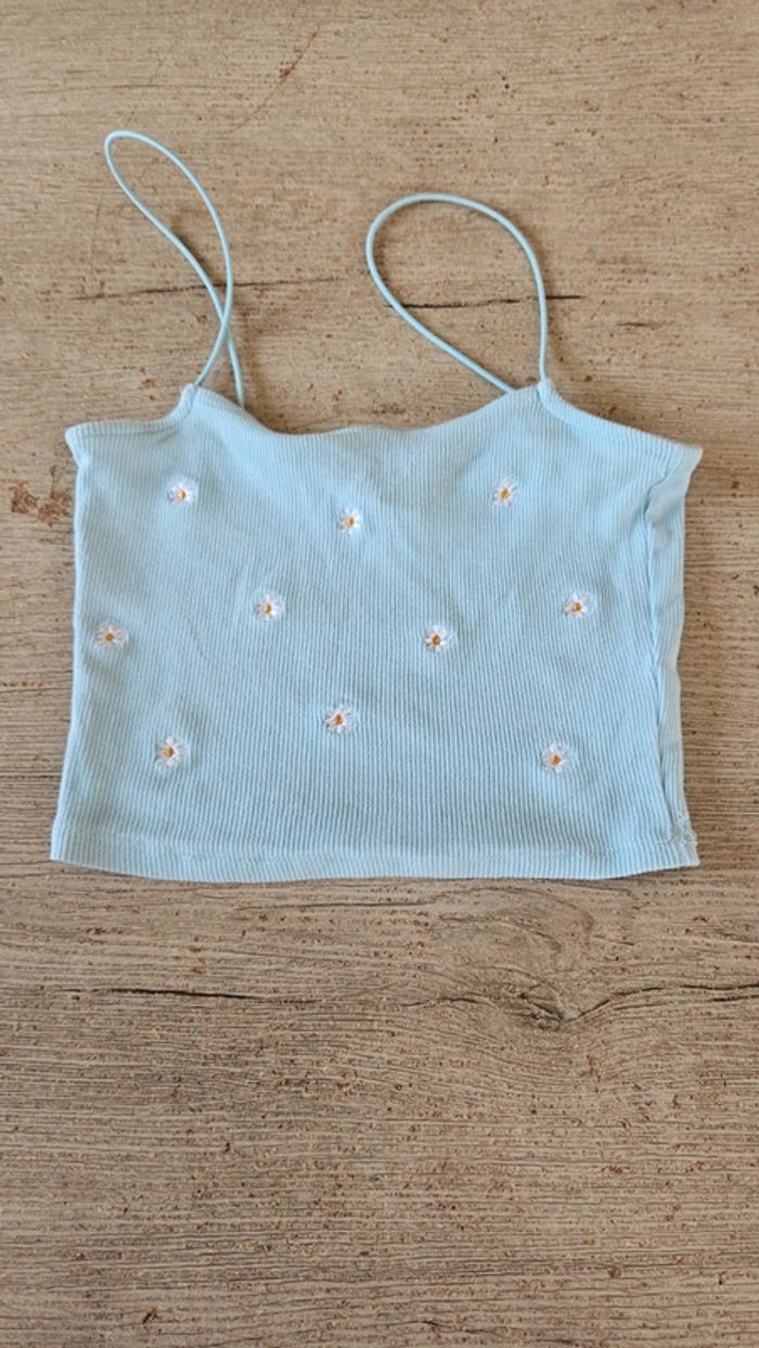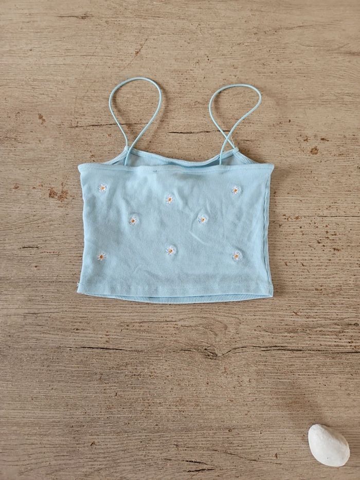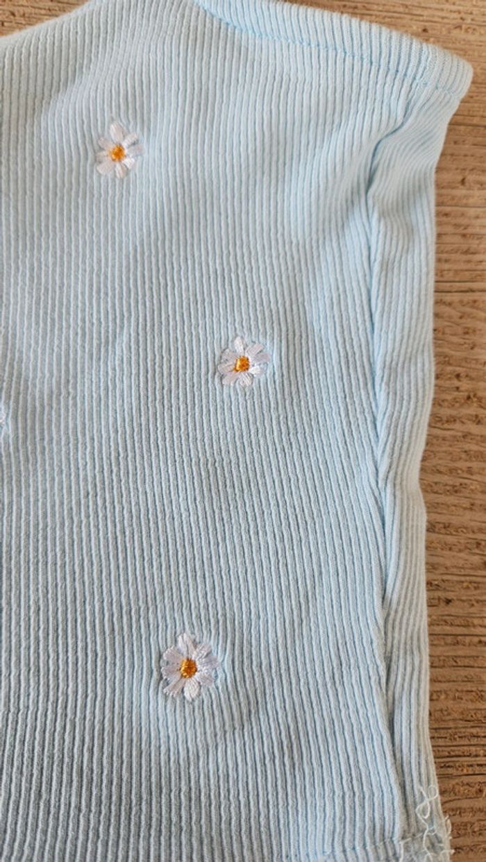 Débardeur court, bleu clair finement cotellé, avec fleurs brodées, Primark, taille XS - photo numéro 5