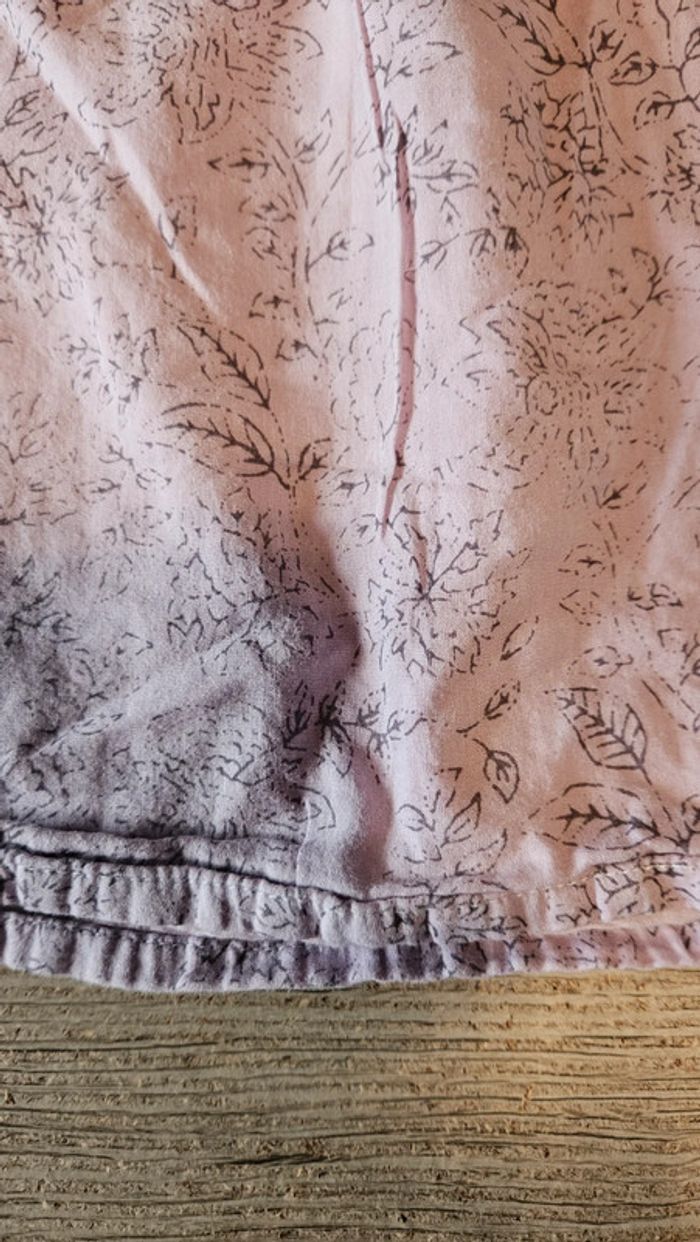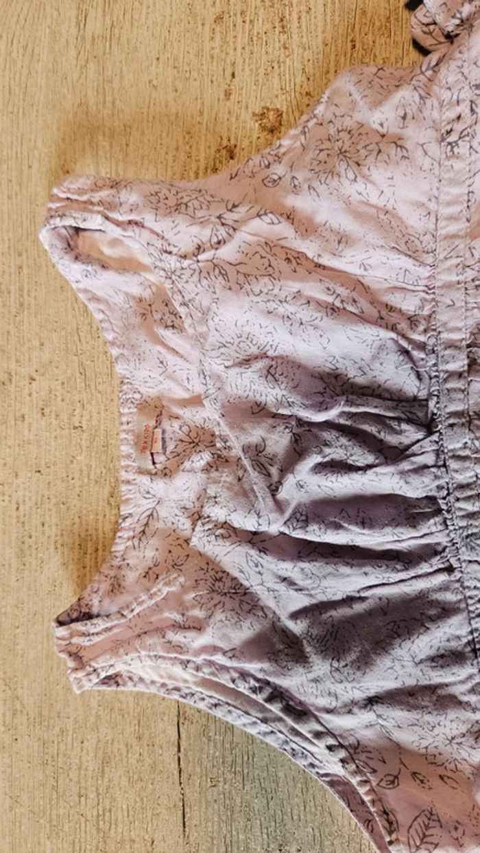 Jolie blouse pour fille de couleur parme avec des dessins de fleurs et de feuilles grises. Mise 1 seule fois, donc nickel. Moulant juqu en dessous de la poitrine puis plus large #deborahtock_10ans