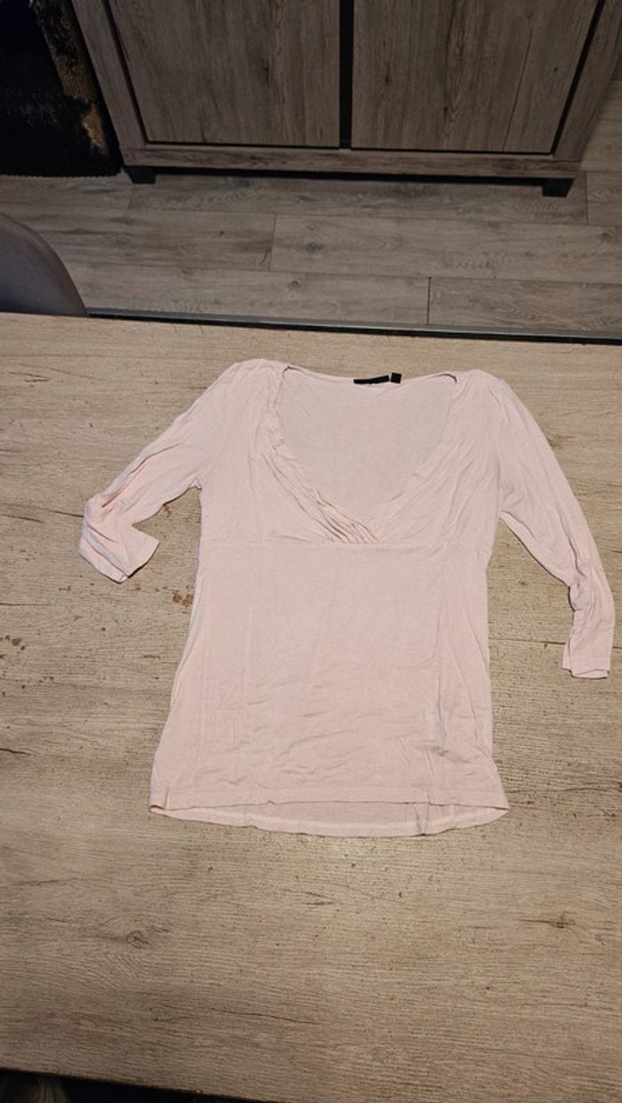 Blouse à manches 3/4 style cache coeur. Rose trés clair. Très agréable à porter. Mis 2 ou 3 fois. Convient bien pour du M #deborahtock_femmeM