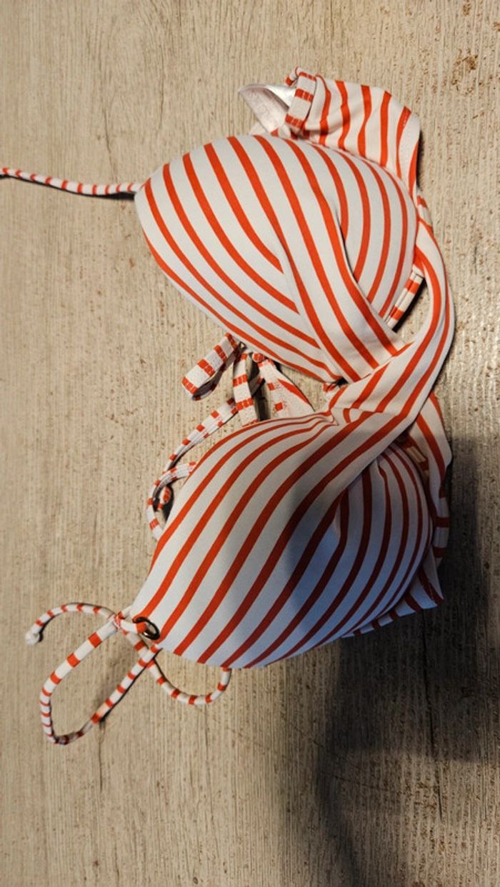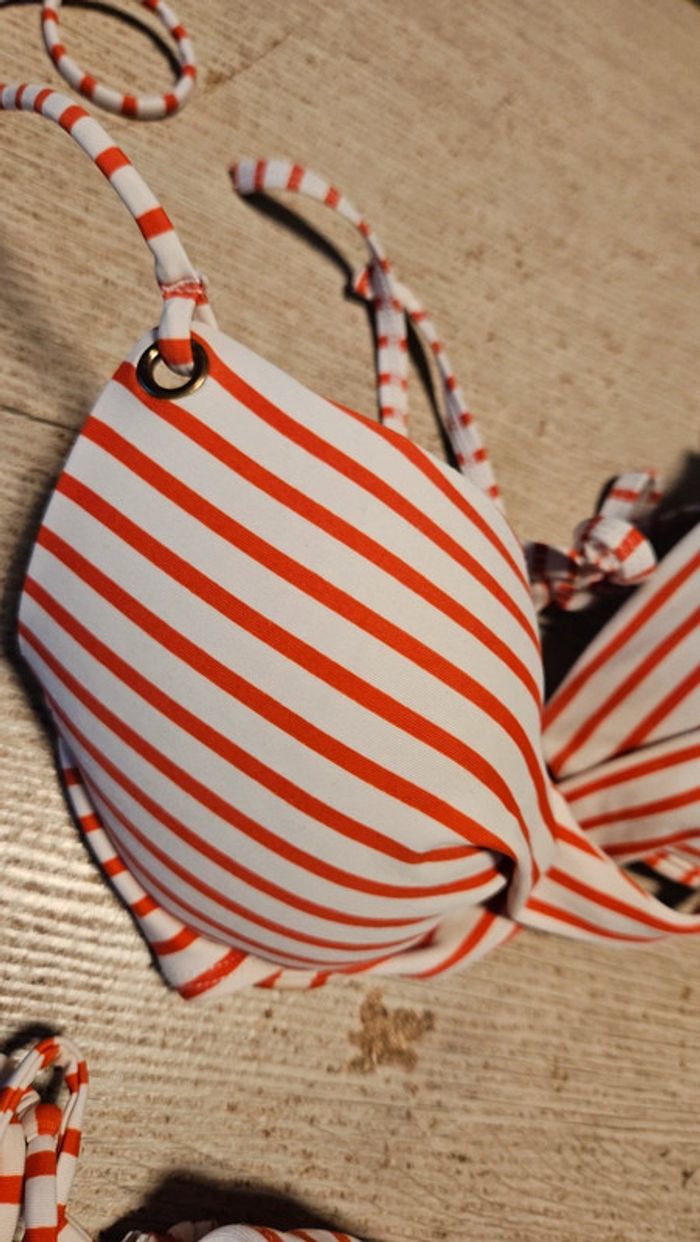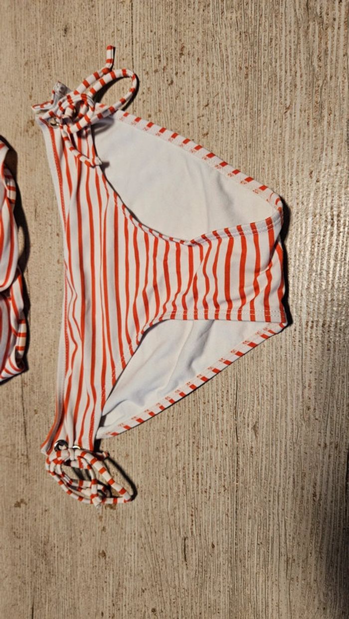 Bikini blanc ligné rouge, taille M, peu mis - photo numéro 5