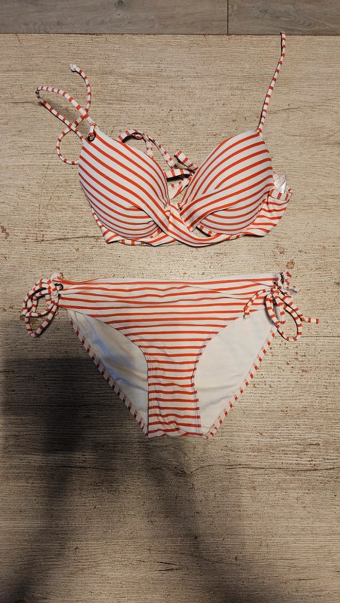 Bikini blanc ligné rouge, taille M, peu mis - photo numéro 1