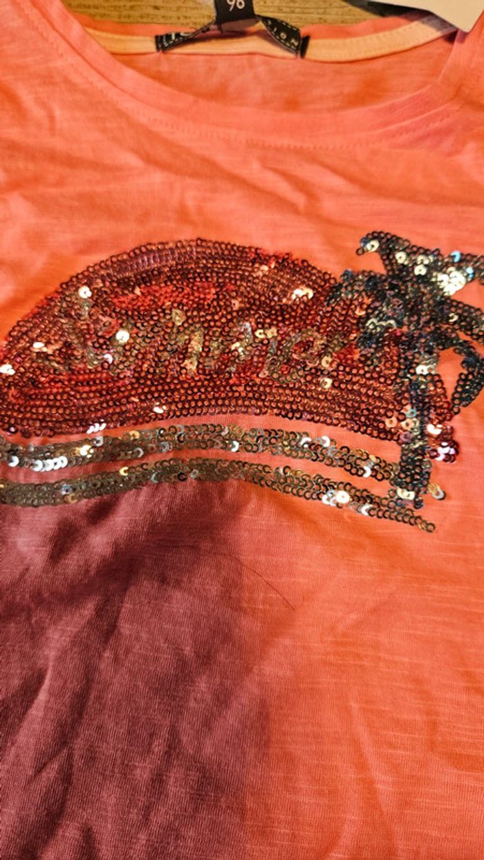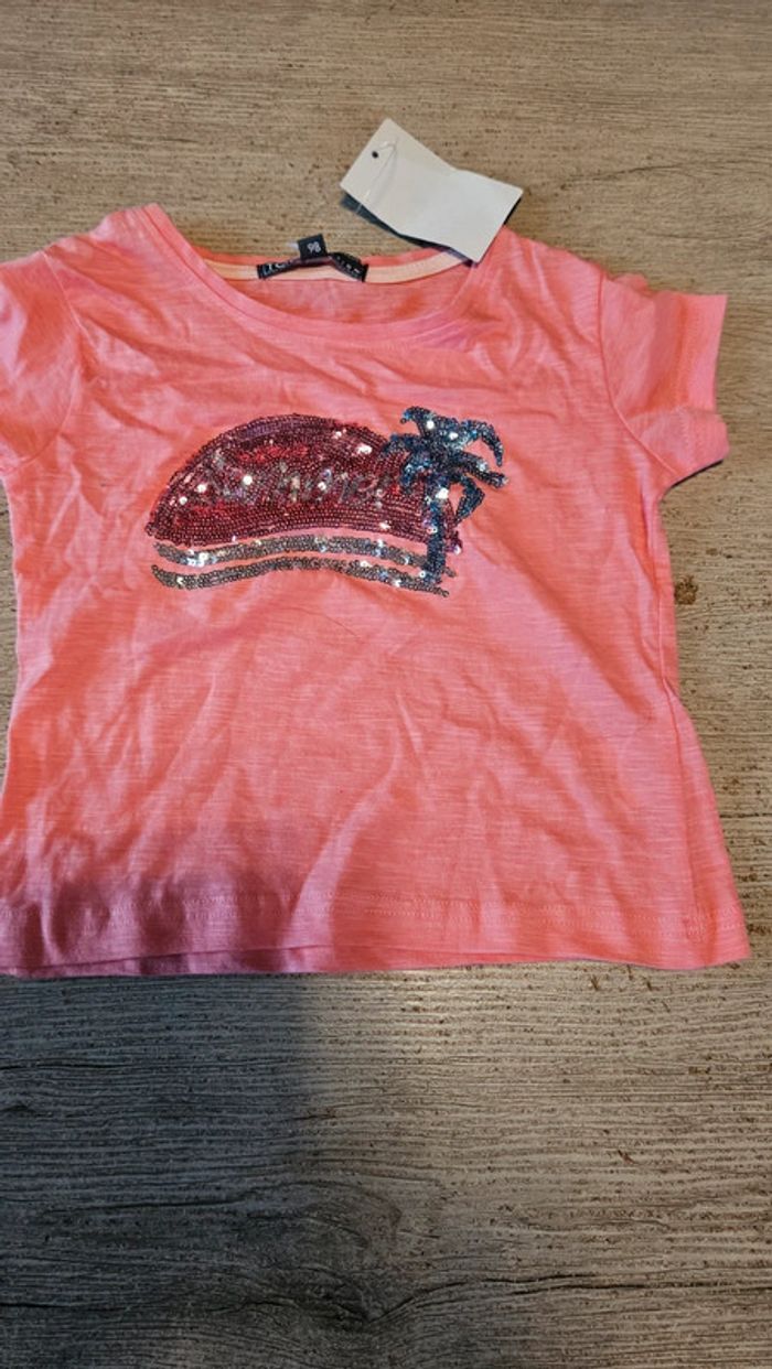 T shirt rose à manches courtes avec dessin en sequins, TQF Collection, 3 ans, neuf - photo numéro 2