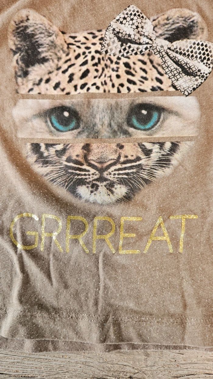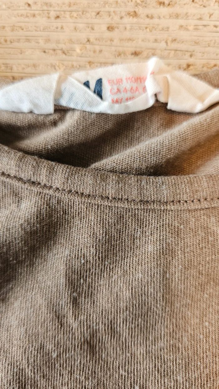 T shirt brun clair avec dessin, manches courtes, H&M, taille 4/6 ans - photo numéro 4