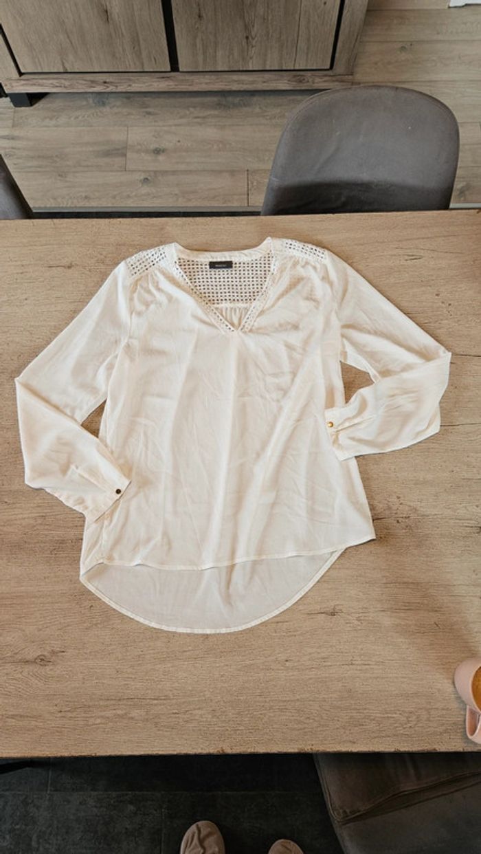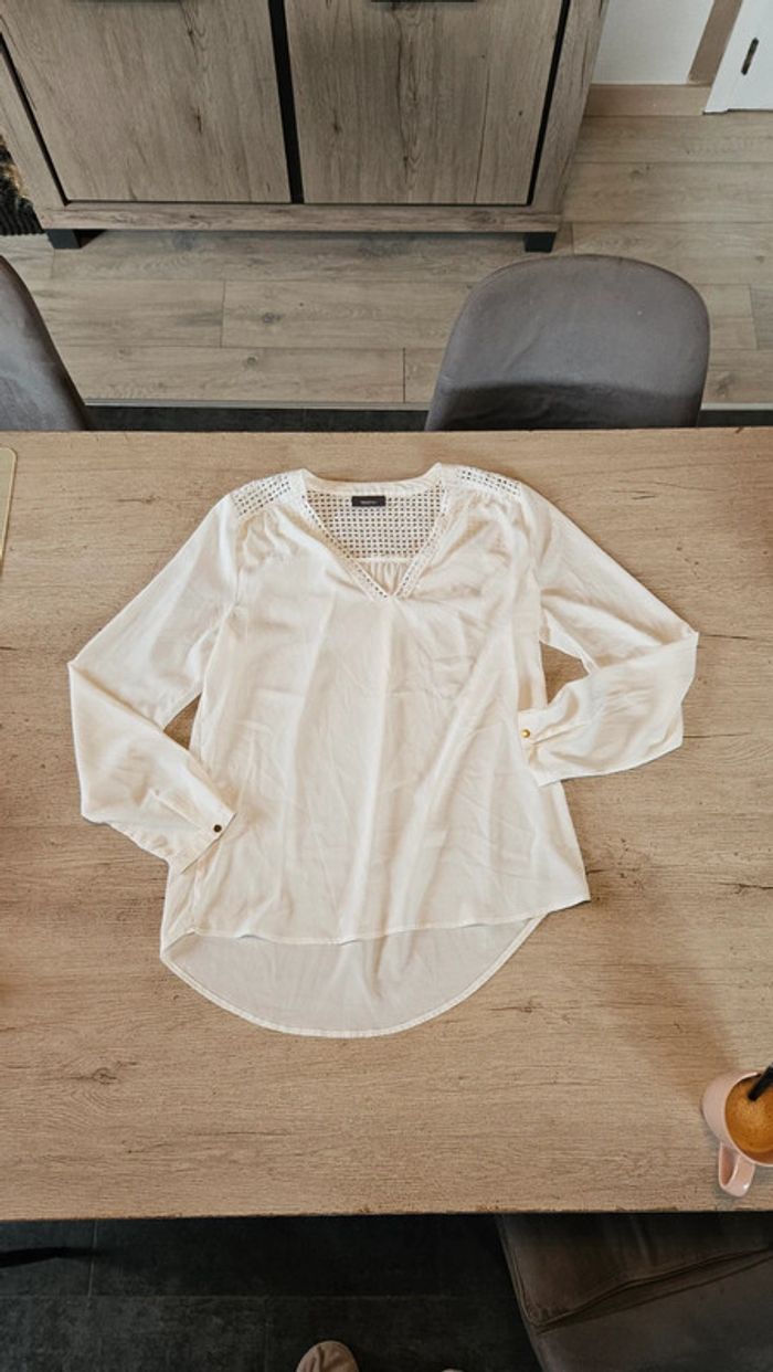 Chemisier blanc cassé femme, manches longues, taille S, Yessica - photo numéro 1