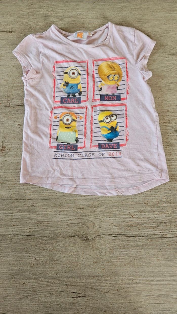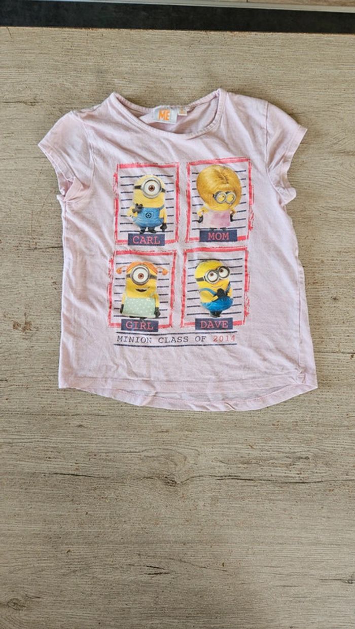 T shirt rose clair à manches courtes, Les Minions, 8 ans, peu mis