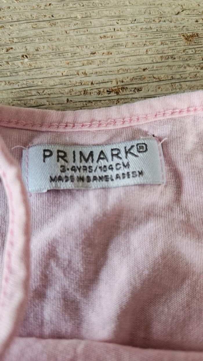 Combi short à bretelles rose clair, avec volant, Primark, 3/4 ans, nickel