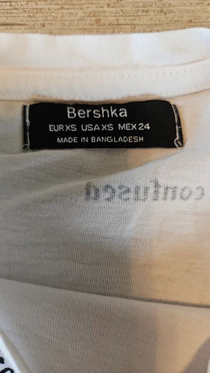 T shirt fille à manches courtes avec inscriptions noires, Bershka, XS - photo numéro 1