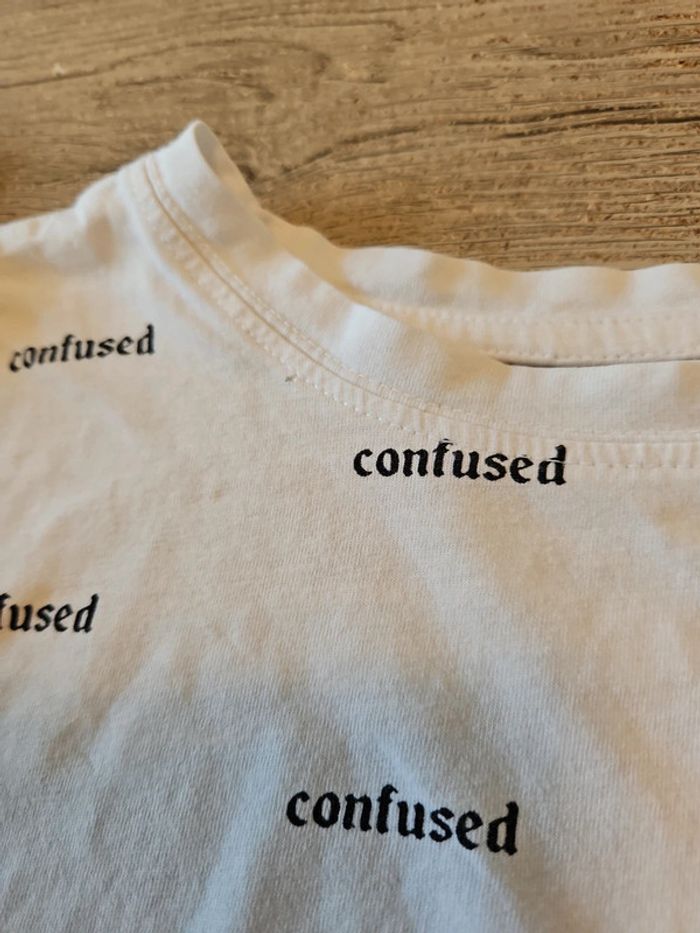T shirt fille à manches courtes avec inscriptions noires, Bershka, XS