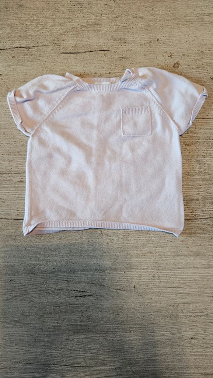 Pull léger rose clair à manches courtes, avec faux boutons dans le dos, Okaïdi, 3 ans