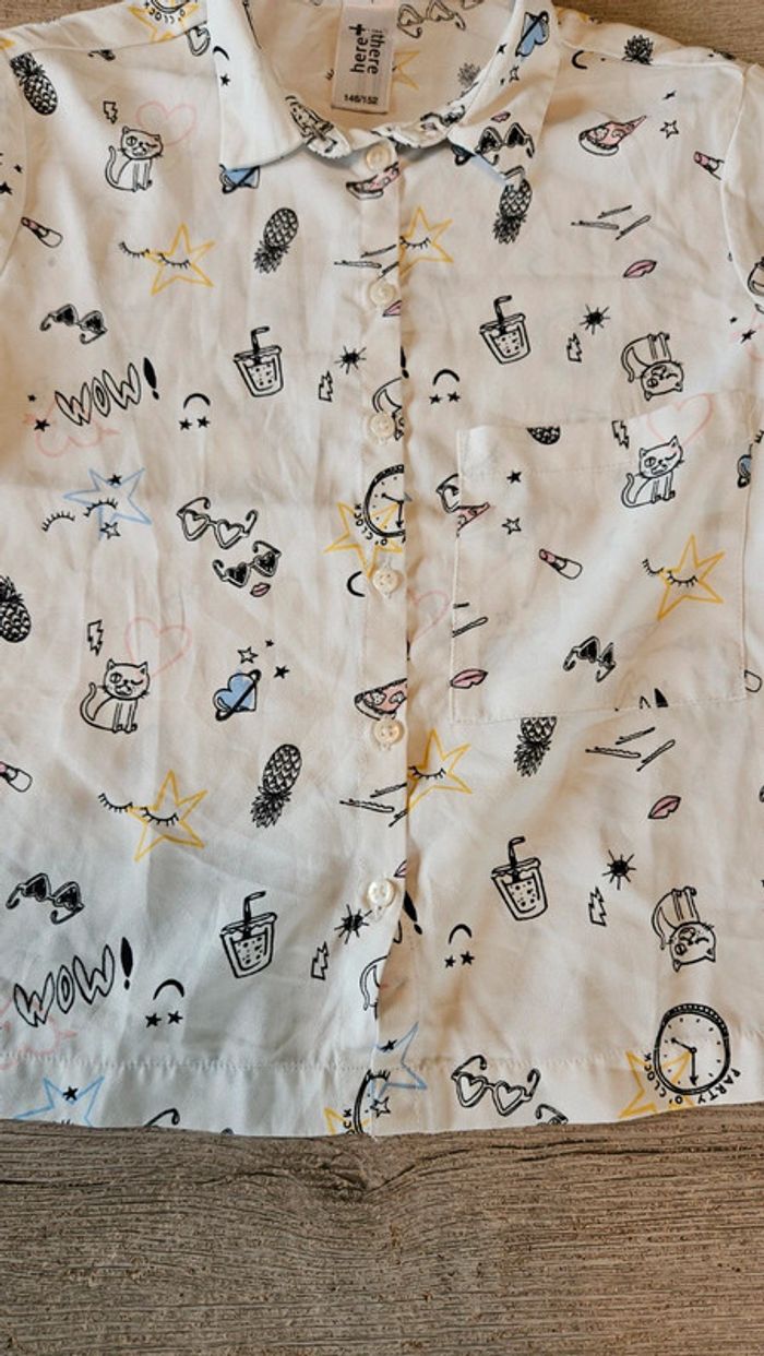 Chemise à manches courtes, blanc cassé avec dessins, Here+There,  11/12 ans - photo numéro 6