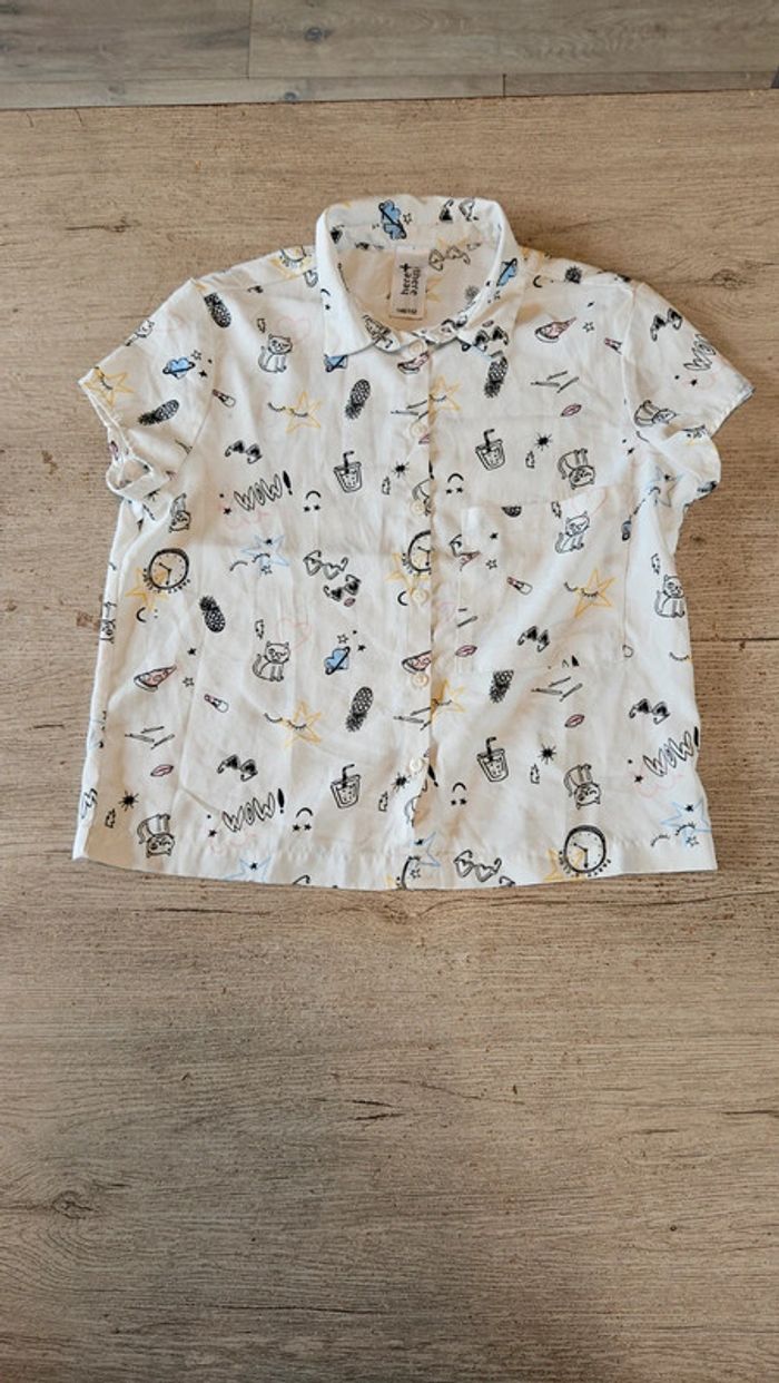 Chemise à manches courtes, blanc cassé avec dessins, Here+There,  11/12 ans - photo numéro 1