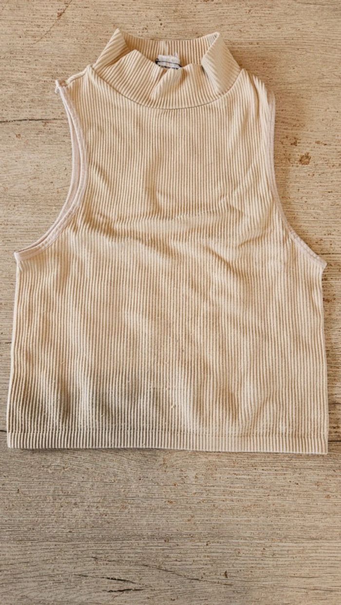 Débardeur beige cotellé, à col montant, Zara, Taille XS/S - photo numéro 2