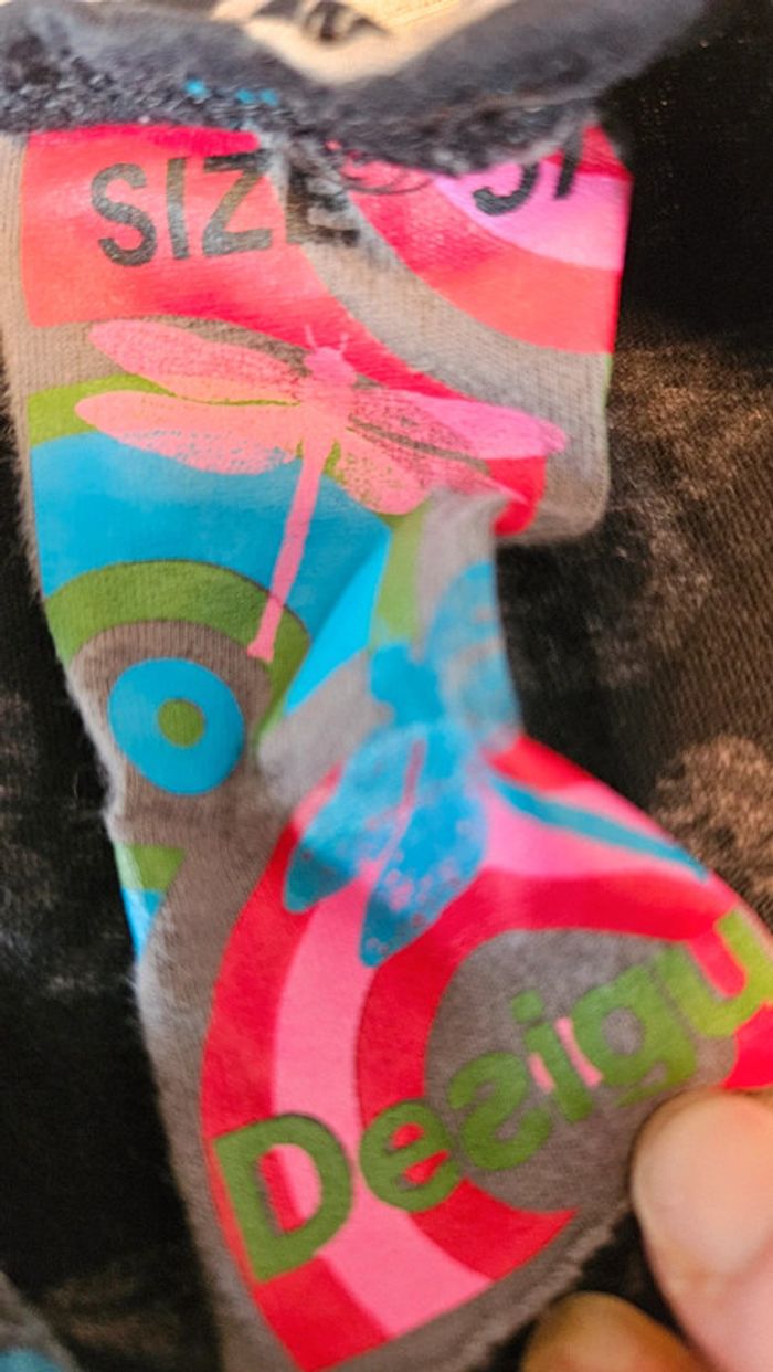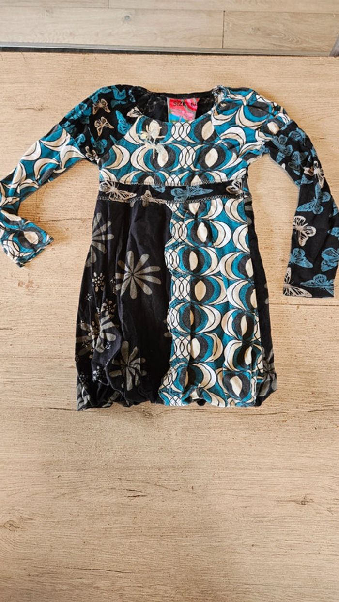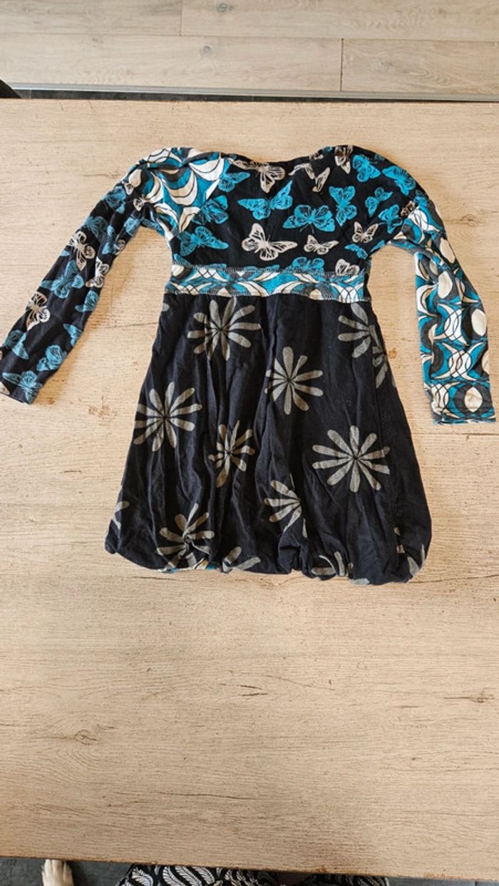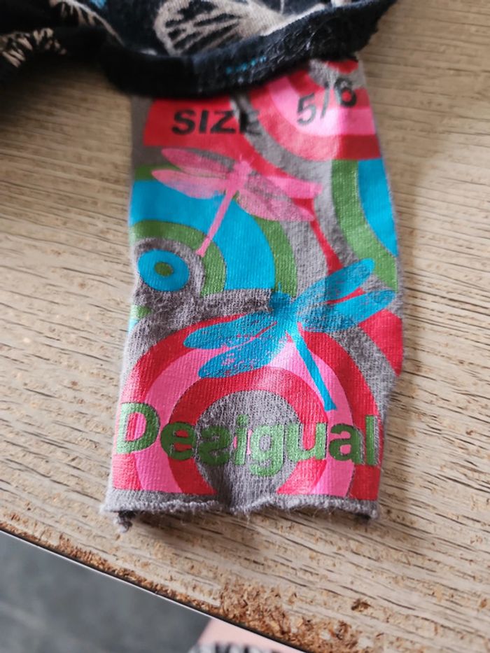 Robe courte à manches longues, noire à dessin, Desigual, 5/6 ans, nickel