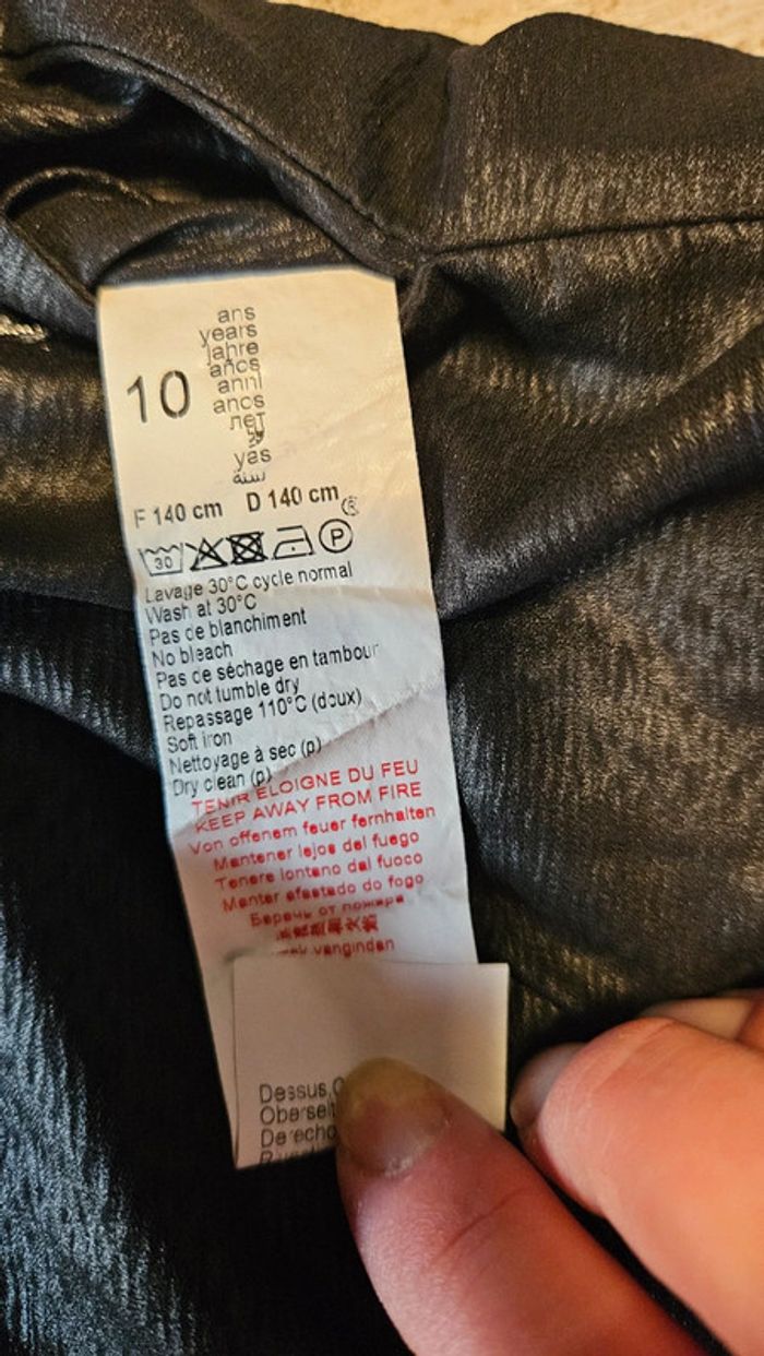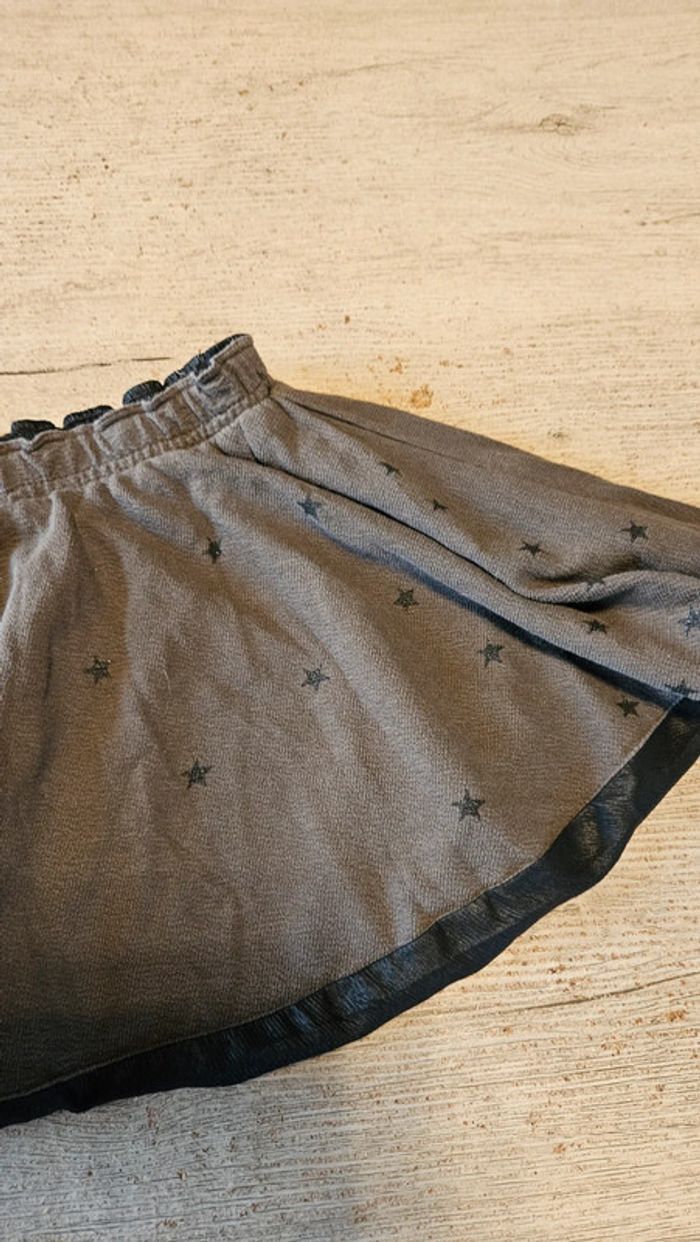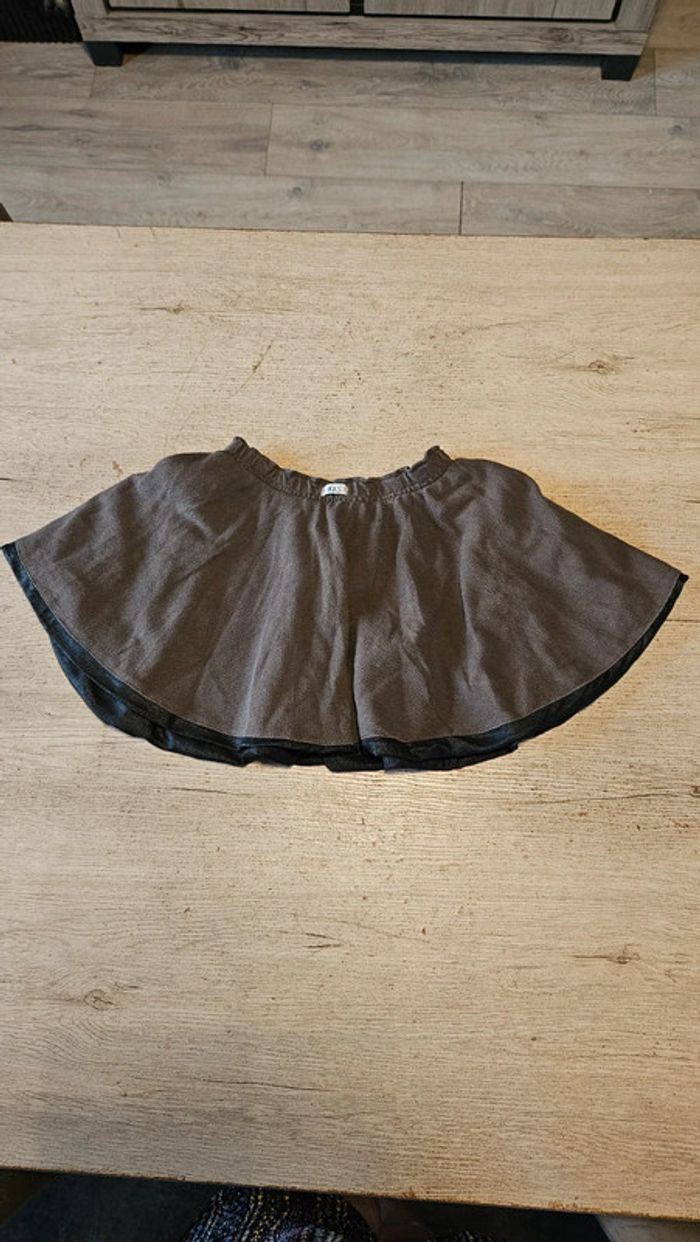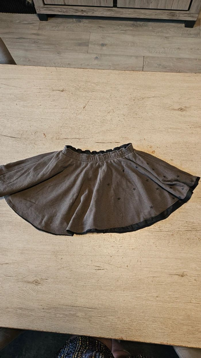 Jolie jupe réversible mise 1 seule fois. Gros élastique à la taille. Un côté est noir légèrement brillant et l autre côte est brun foncé avec des étoiles noires. Assez epaisse. #deborahtock_10ans