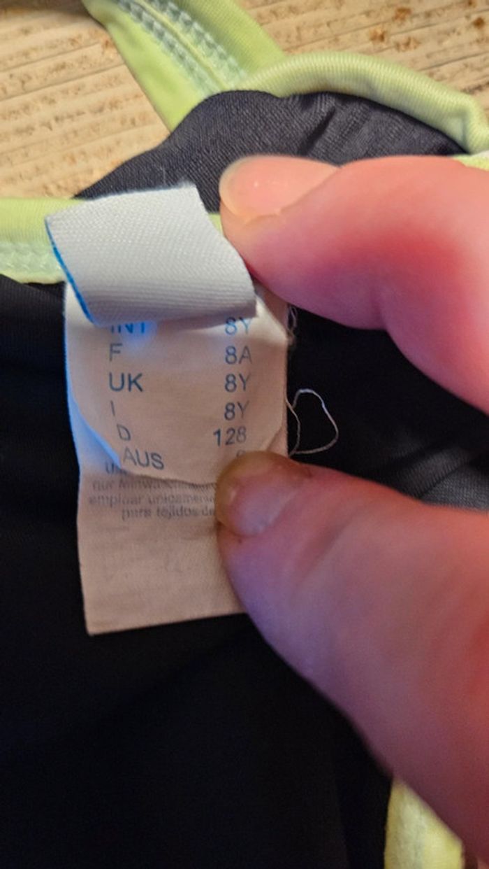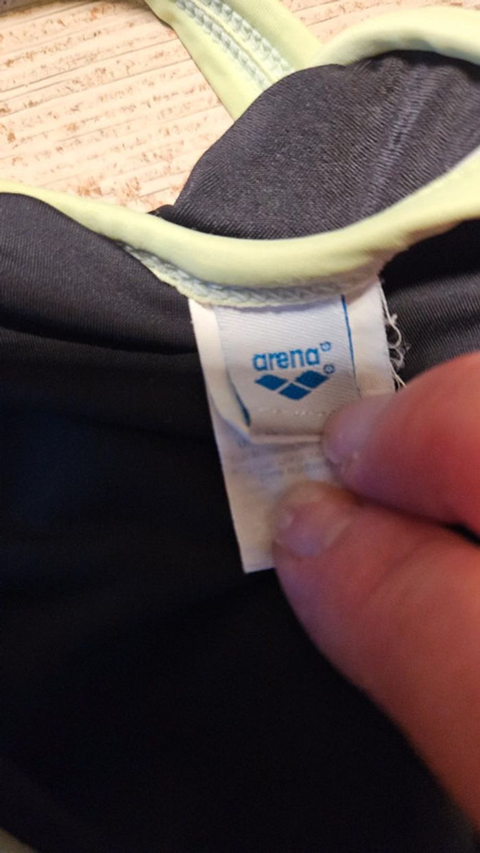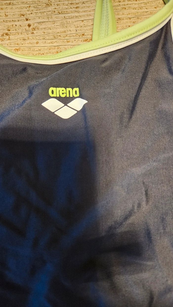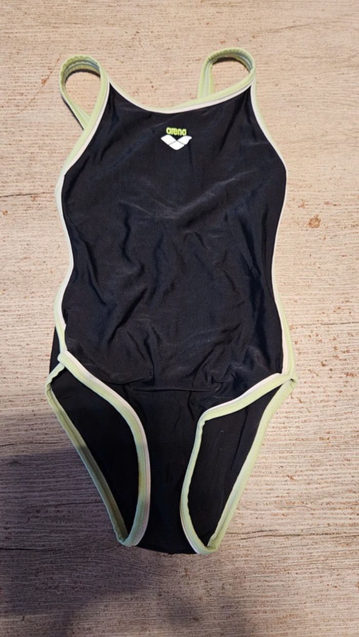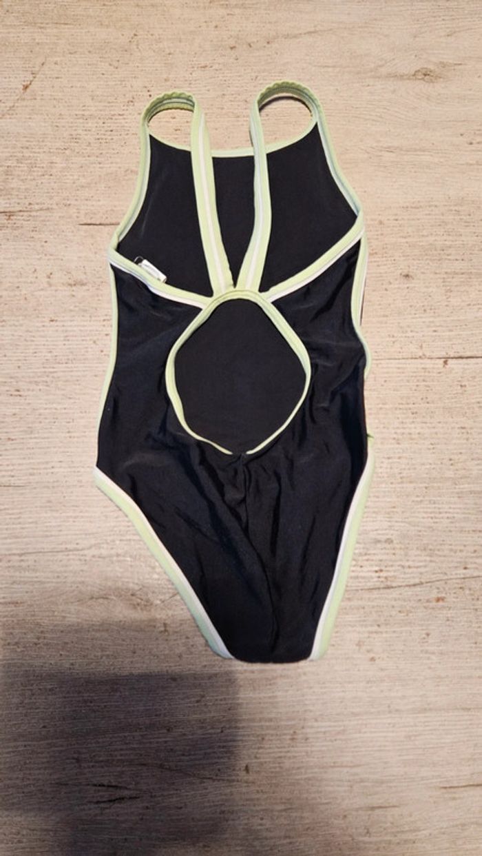 Maillot de bain fille 1 pièce noir à bors vert clair et blanc, Arena, 8 ans, nickel