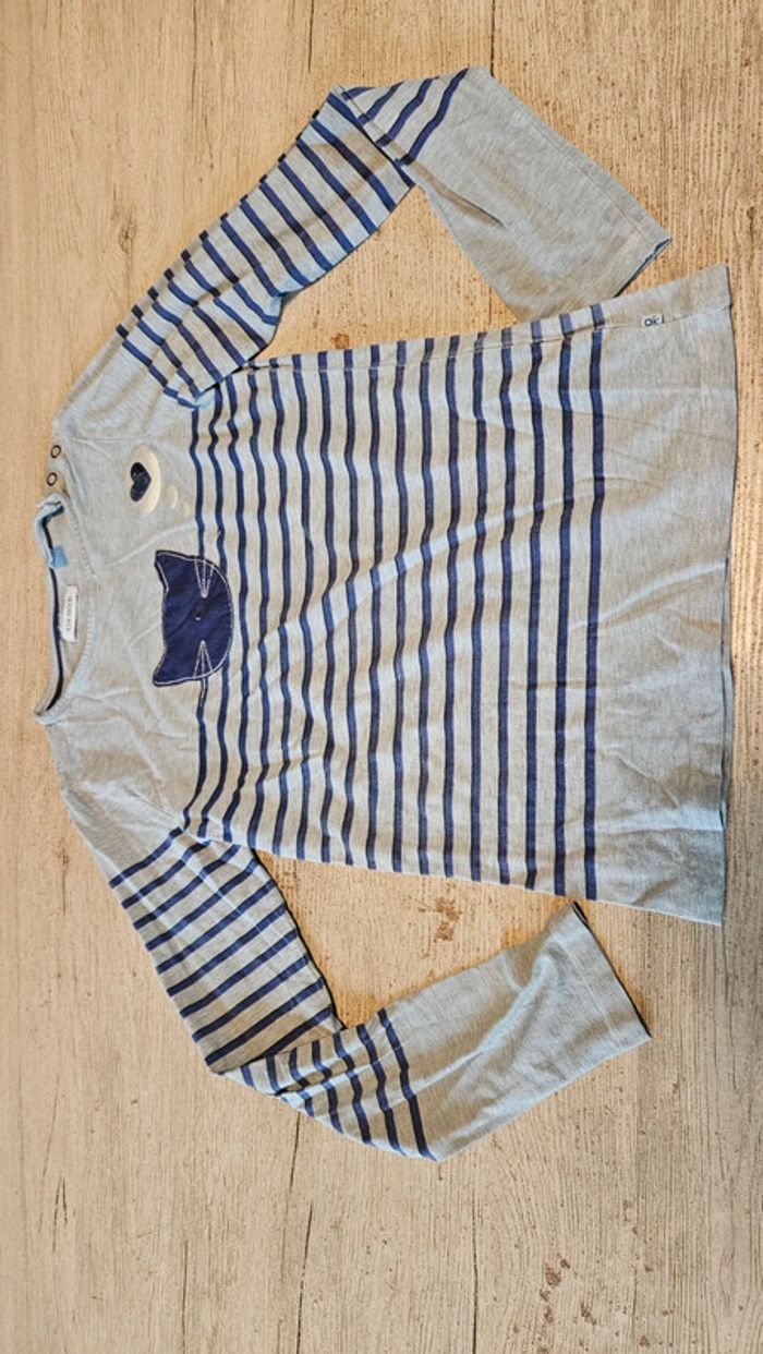 T shirt gris ligné bleu à manches longues, Okaïfi, 12 ans, nickel - photo numéro 1