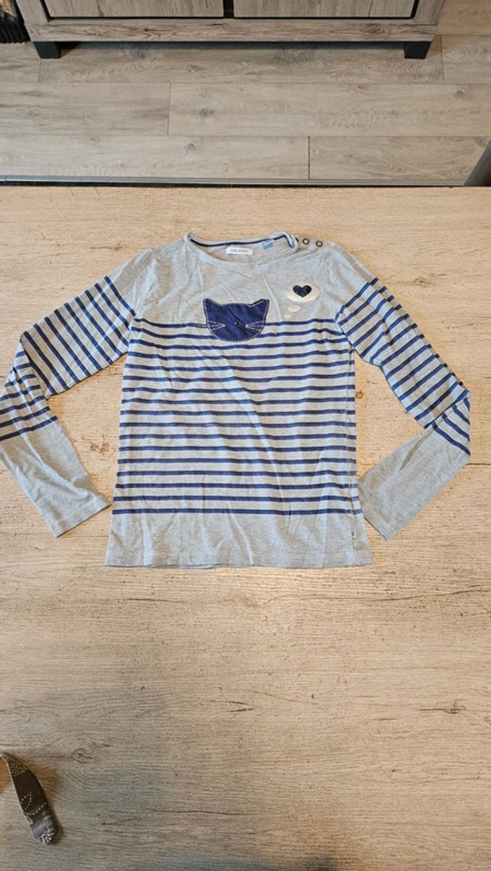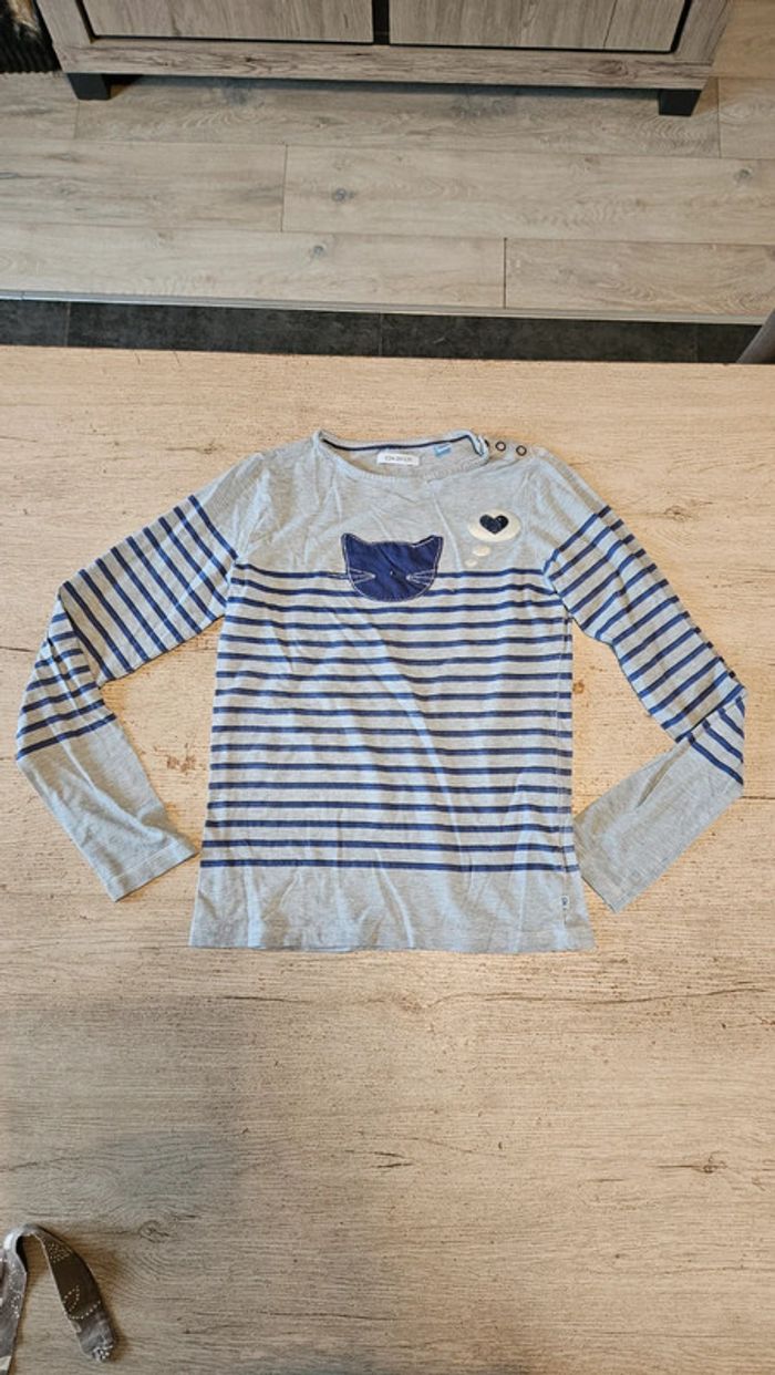 T shirt gris ligné bleu à manches longues, Okaïfi, 12 ans, nickel