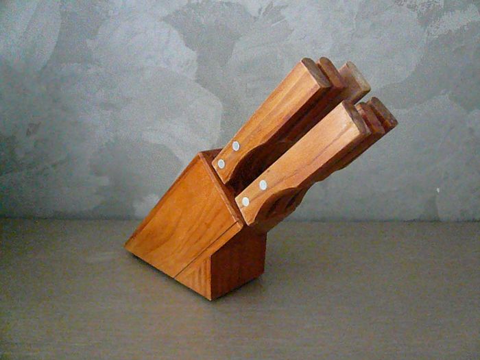 Bloc en bois avec 6 couteaux à steaks - photo numéro 1
