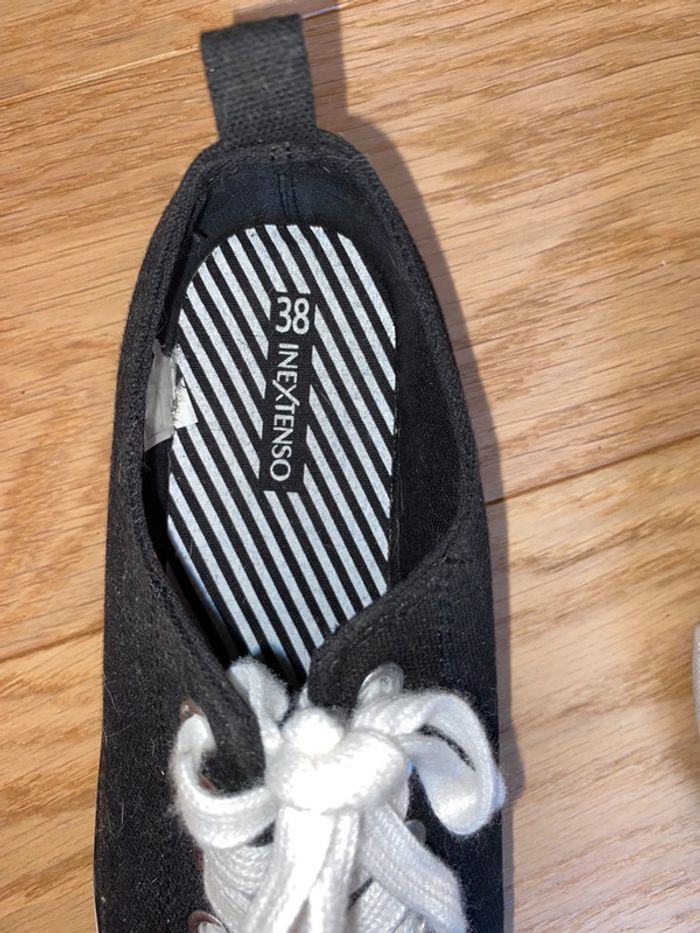 👟 Sneakers In Extenso – Taille 38 Noires et blanches, portées une seule fois, donc comme neuves. Très confortable, style classique qui va avec tout. Semelles propres, aucune usure visible. 📦 Prêtes à être portées !