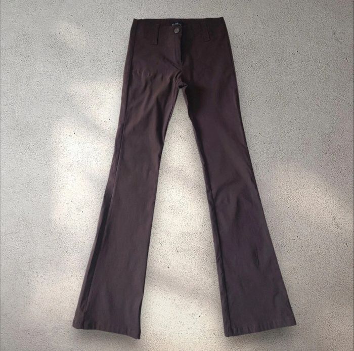 Pantalon en stretch marron jambes évasées taille haute 36 - photo numéro 1